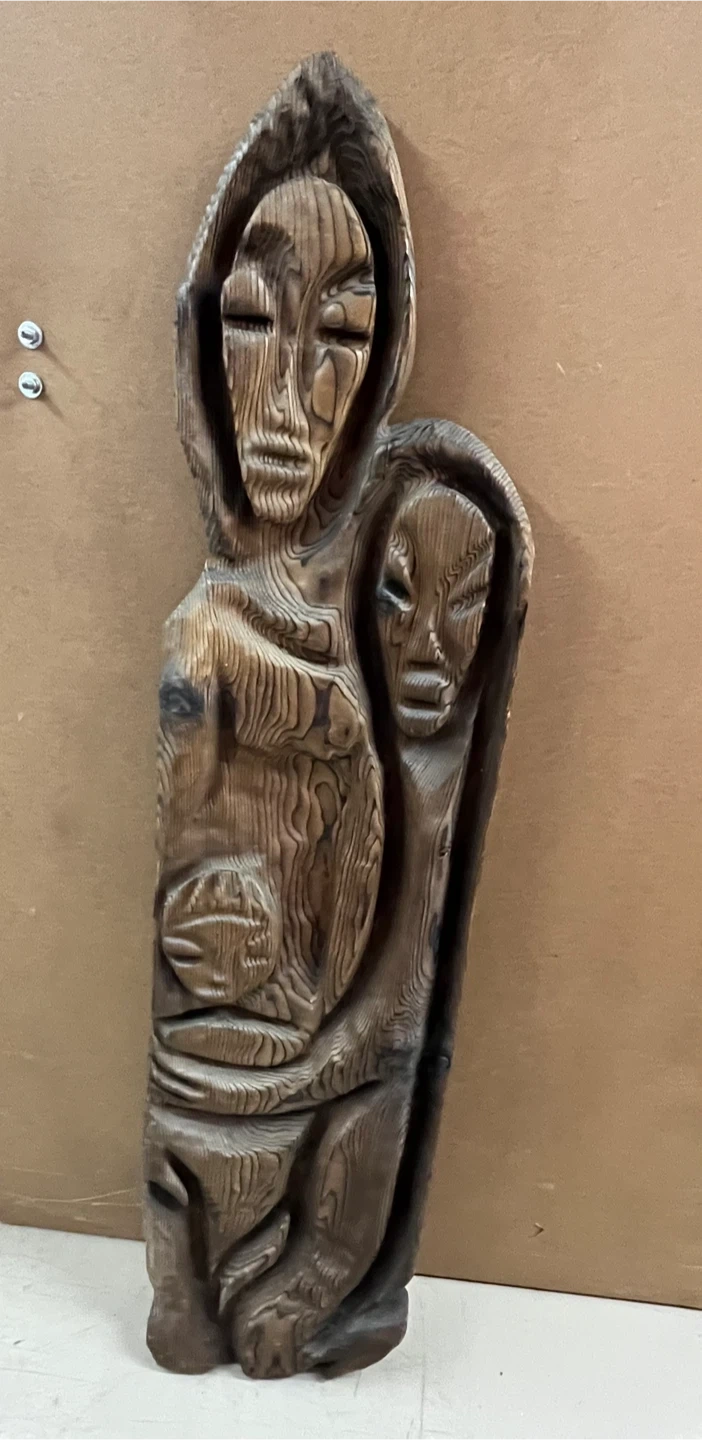 This is a unique modern decorative wooden carving sculpture featuring a Family .