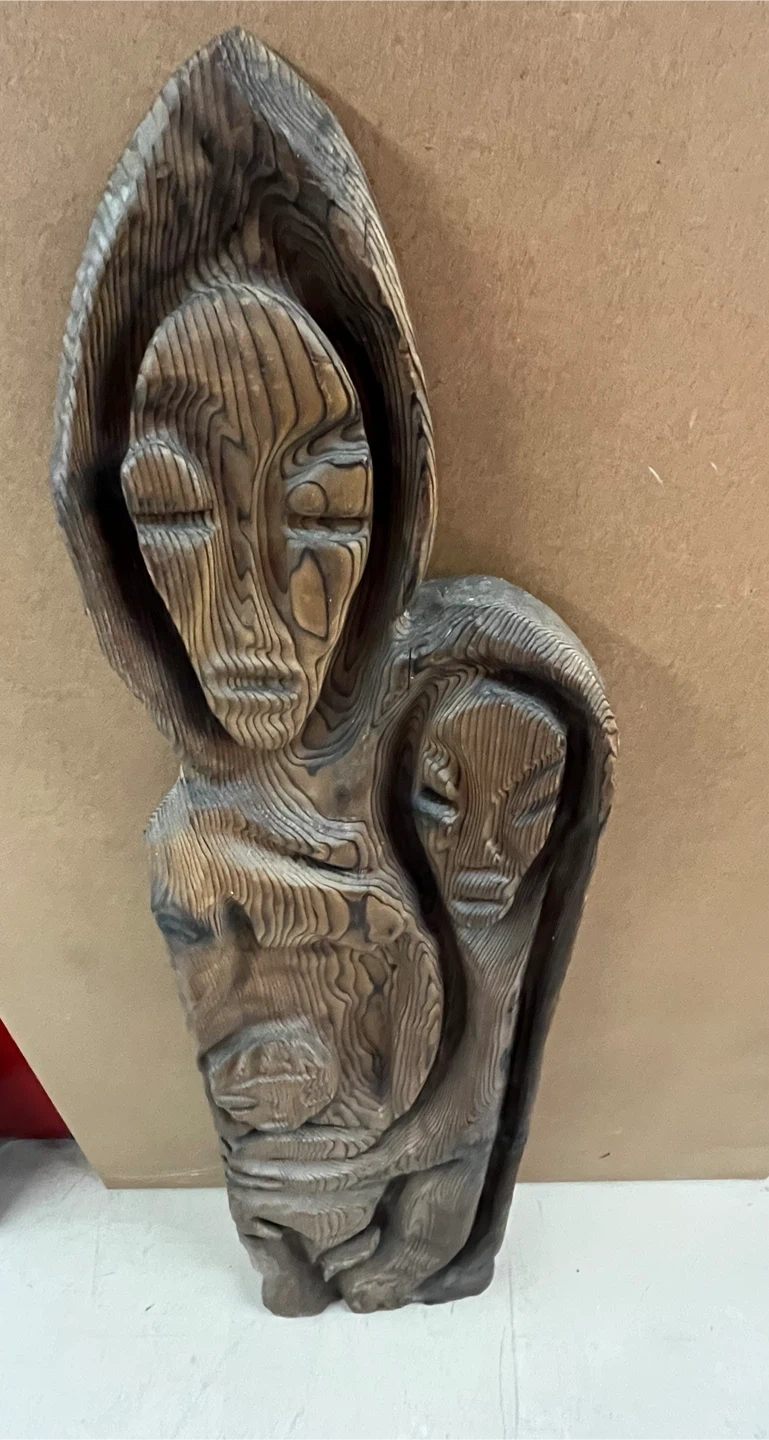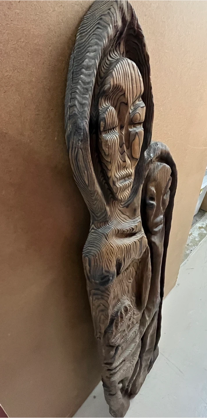 This is a unique modern decorative wooden carving sculpture featuring a Family .