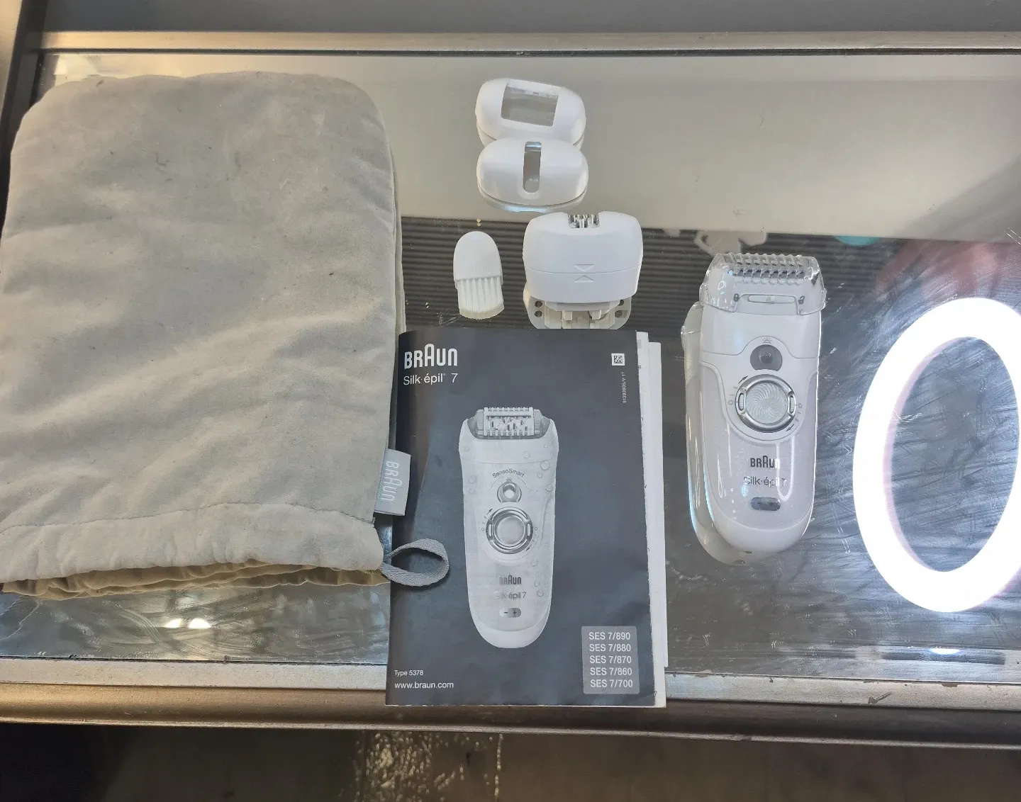 Braun Silk-épil 7 epilator comes with a cleaning brush and travel pouch. It has multiple attachments for different uses. Perfect for smooth skin at home!