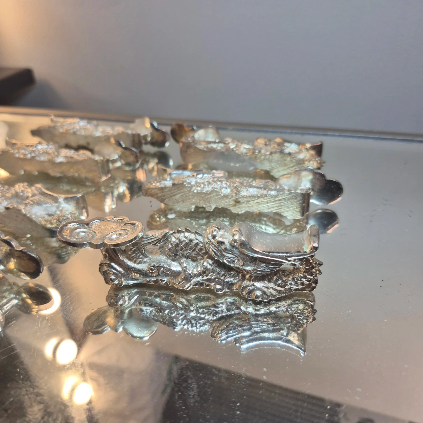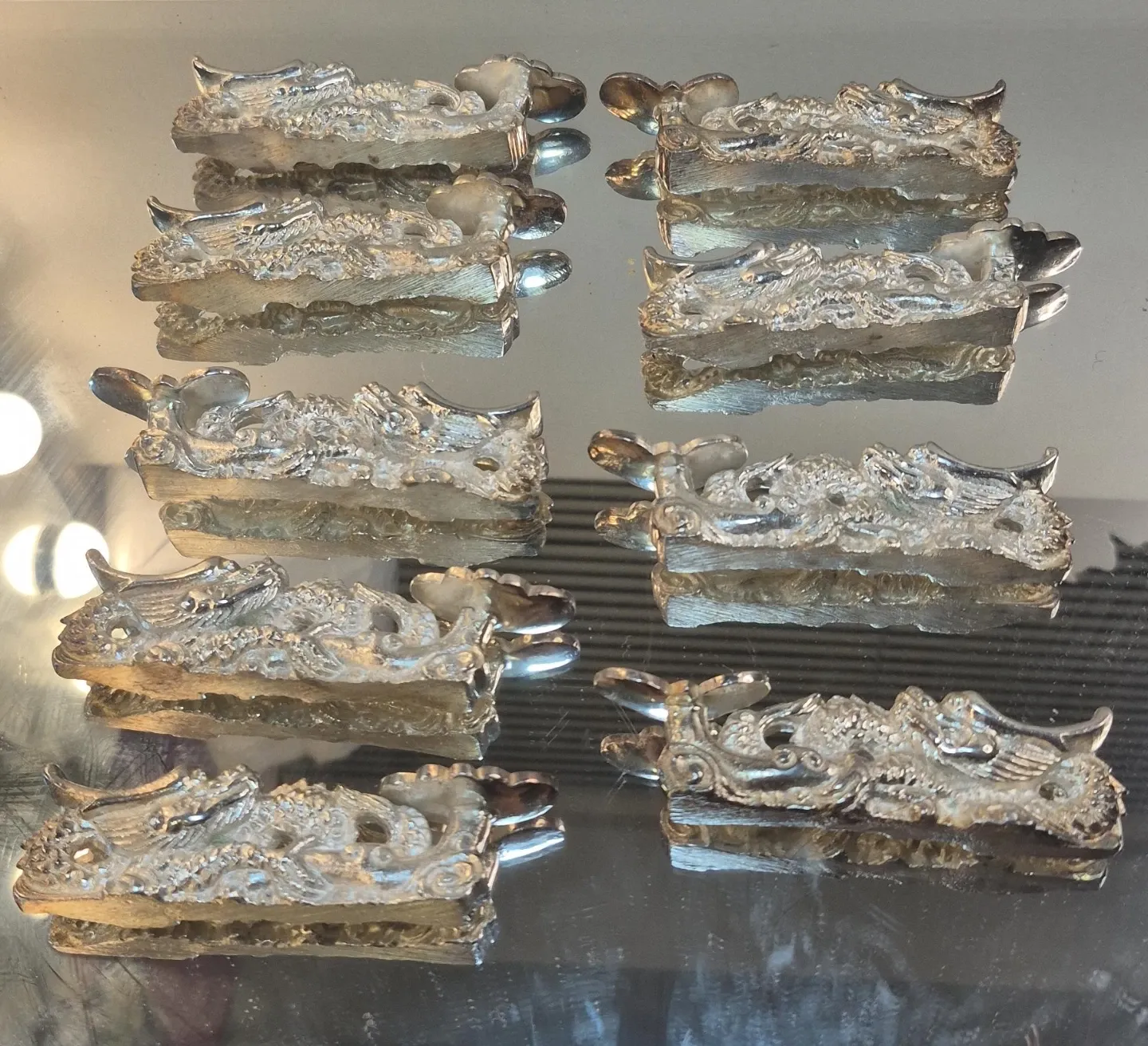 Buy & SellSilver Dragon Chopstick Rests Set of 16Silver Dragon Chopstick Rests Set of 16$30A set of 16 silver-coloured chopstick rests. Each rest is shaped like a dragon. They're made of metal.WHERE TO MEETCheck LocationView MapSELLERverifiedmymymeoMontecito77769 reviews0 chats·0 favorites·28 viewsSEND CHAT TO SELLERHi mymymeo! I’m interested in your listing.Hi mymymeo! I’m interested in your listing.Get the Karrot app to chatSign In to chat