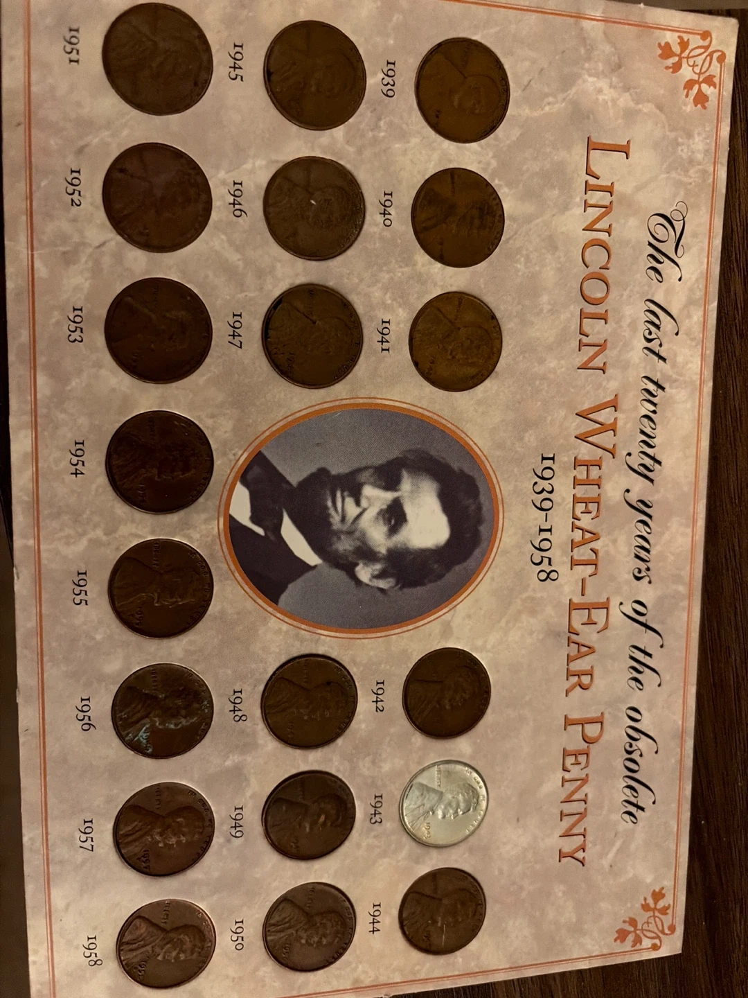 Collection of Lincoln Wheat-Ear Pennies featuring the last twenty years of their production from 1939 to 1958. Includes coins struck from 1939 to 1958, with all mints represented. All coins are genuine United States Mint coinage. Each coin is hand-selected and inspected for quality. This collection consists of genuine coins, each one selected and inspected for quality. Each coin is certain to be in collectible condition.