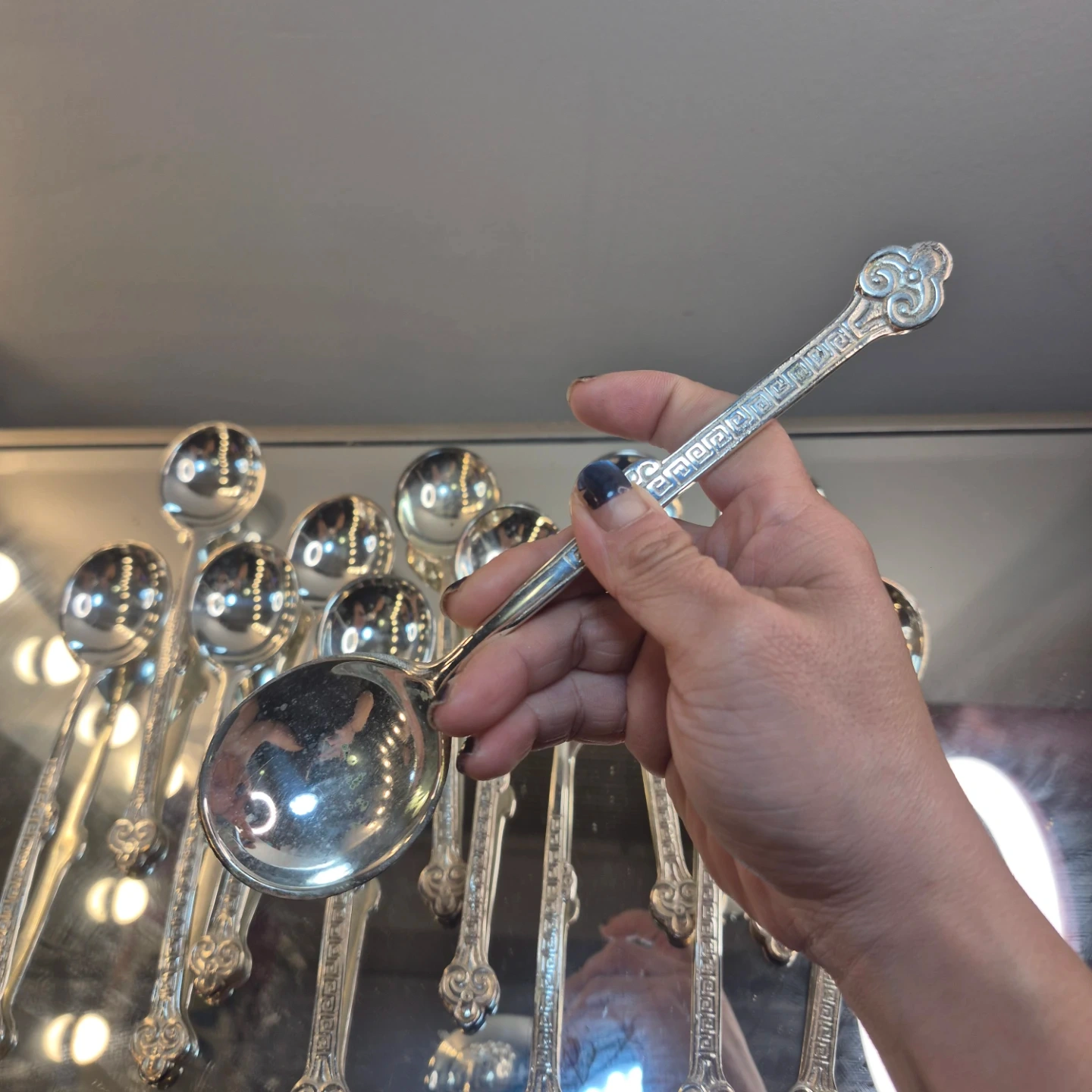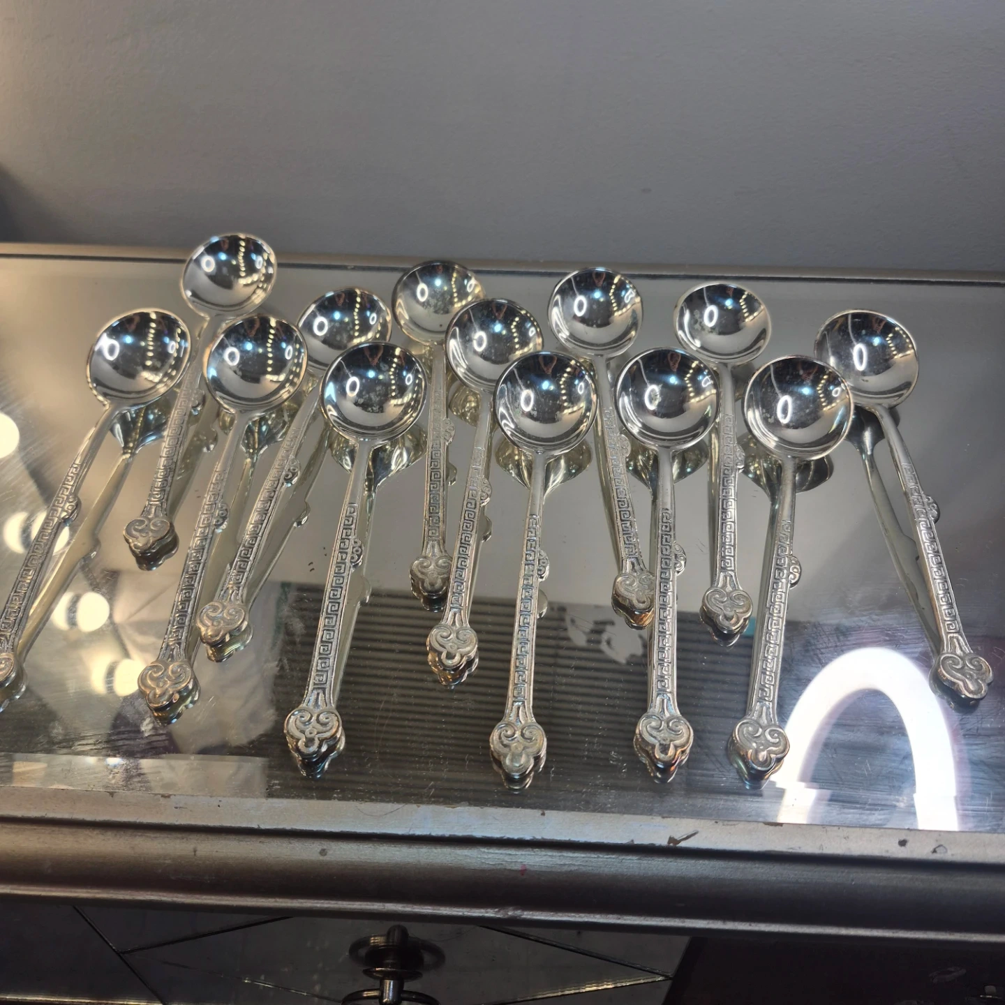 Buy & SellSet of 13 silver tone SpoonsSet of 13 silver tone Spoons$25A set of 13 silver tone spoons with ornate detailing on the handles. These spoons are perfect for serving condiments or desserts.ConditionNewWHERE TO MEETCheck LocationView MapSELLERverifiedmymymeoMontecito77769 reviews0 chats·1 favorites·22 viewsSEND CHAT TO SELLERHi mymymeo! I’m interested in your listing.Hi mymymeo! I’m interested in your listing.Get the Karrot app to chatSign In to chat
