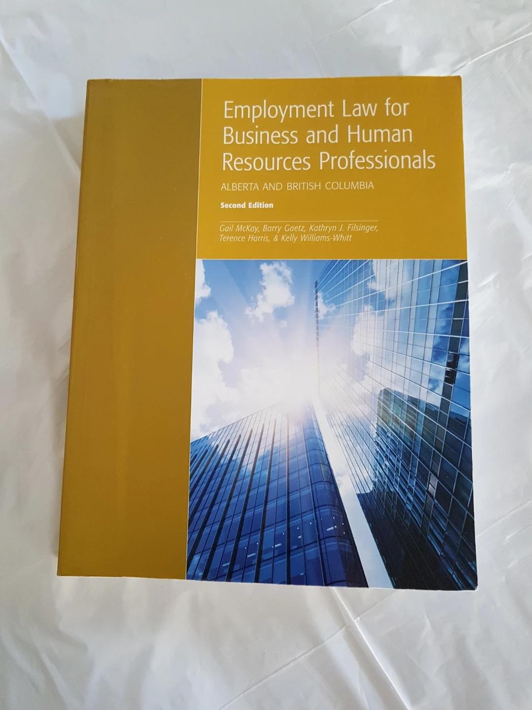 Employment Law for Business and Human Resources Professionals, Second Edition textbook. Authors include Gail McKay, Barry Gaetz, Kathryn J. Filsinger, Terence Harris, & Kelly Williams-Whitt. Published by Emond Montgomery Publications. It covers Alberta and British Columbia law. This book is useful for students and professionals in business and HR.