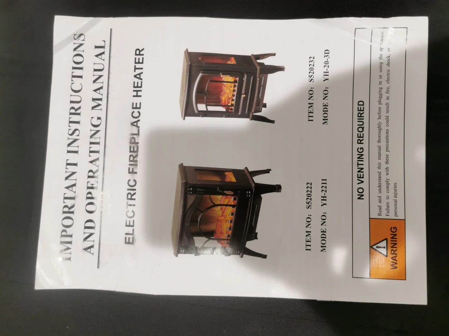 Electric Fireplace Heater- not metal)