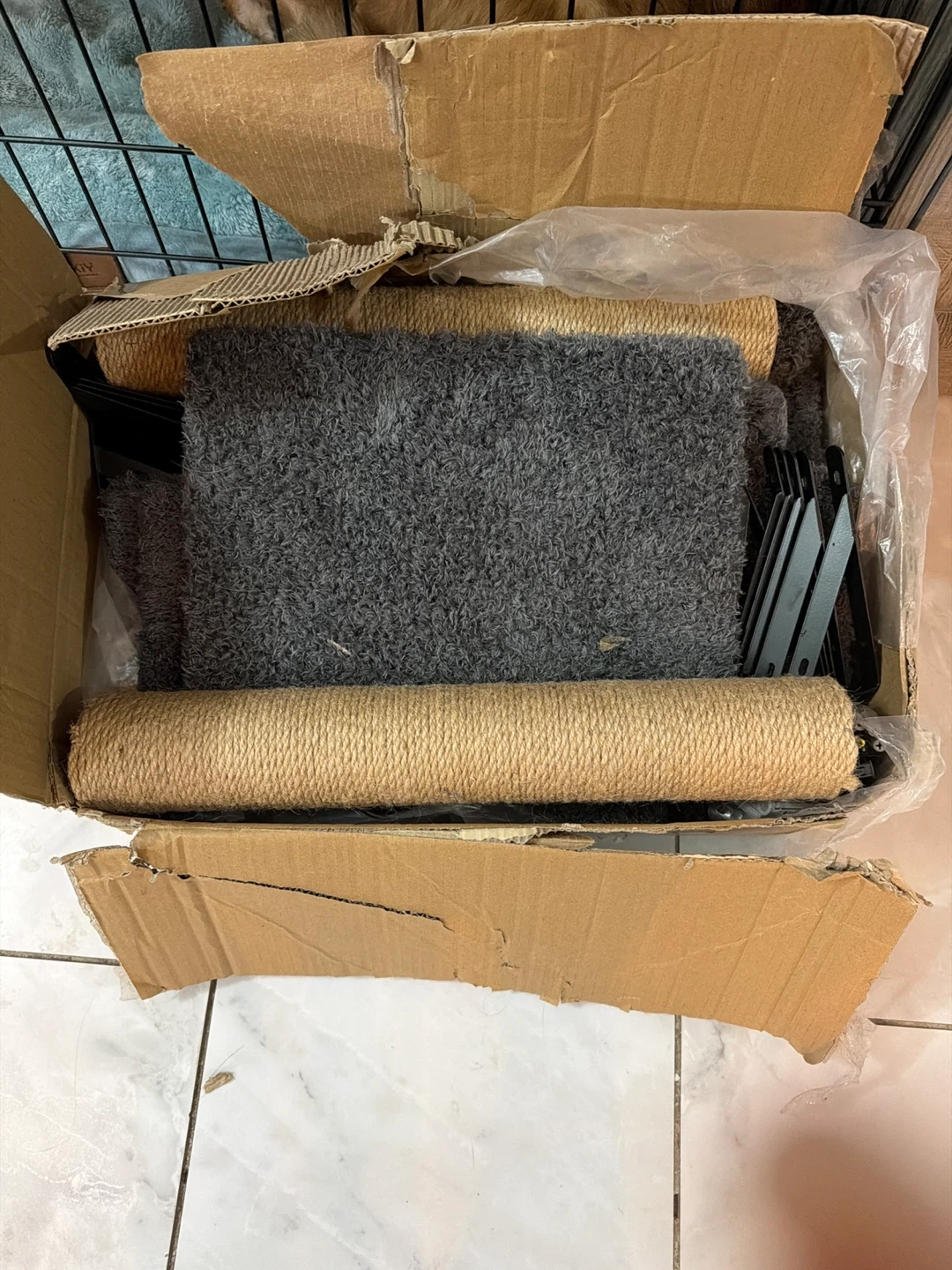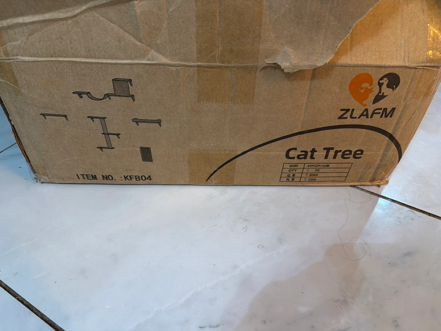 This is a new ZLAFM cat tree, model KFB04. It's made with a durable sisal rope scratching post and a soft carpeted platform. Assembly is required.
