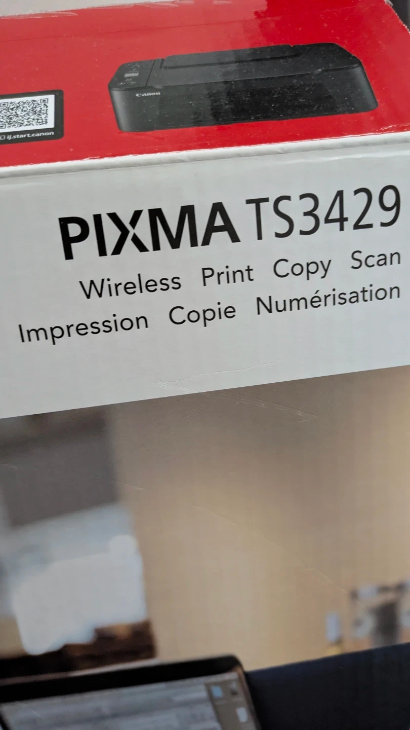This Canon PIXMA TS3429 is a wireless all-in-one printer. It offers print, copy, and scan functions. Compact design.
