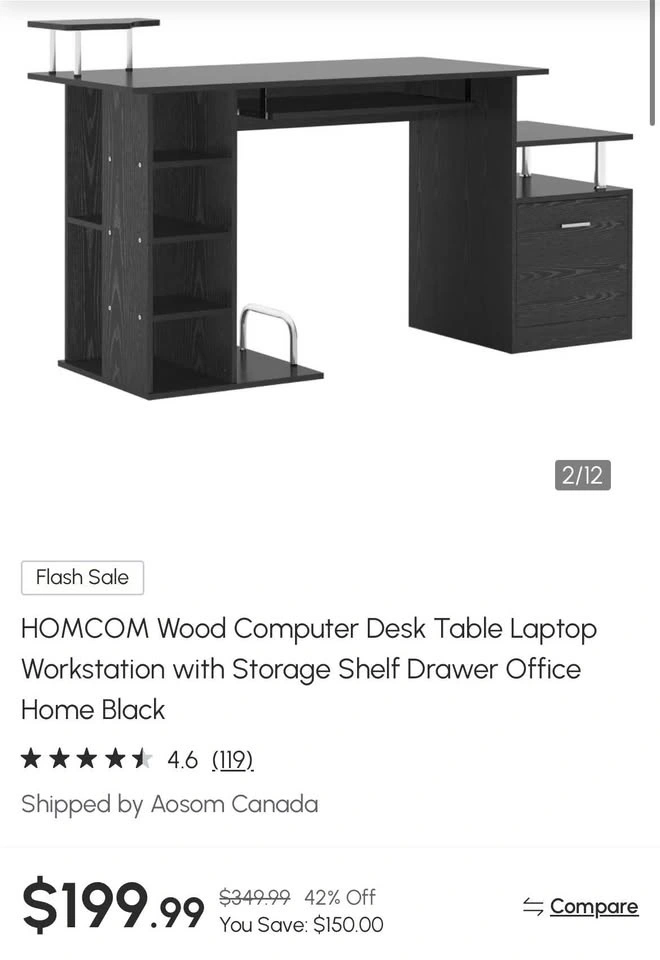 Wood computer desk table with a storage shelf and drawer. Great for a home office. Black, brand new and already assembled.
