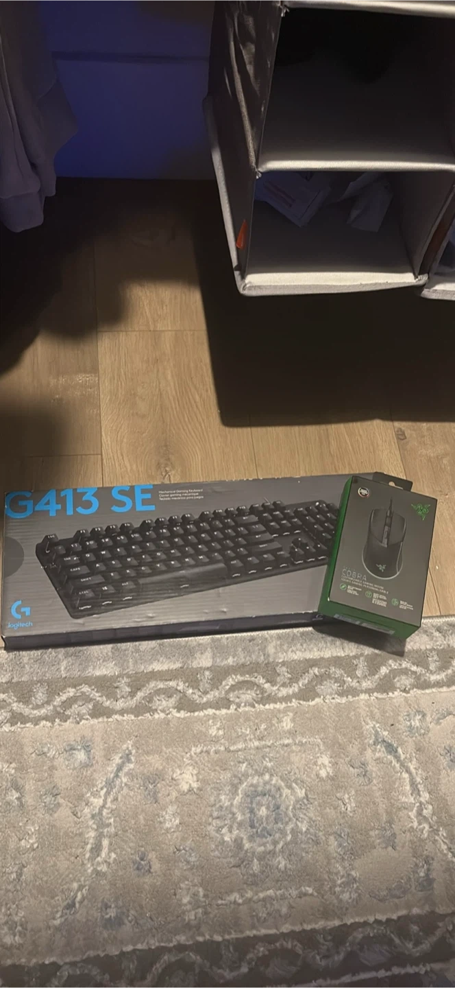 Includes a Logitech G413 SE mechanical gaming keyboard and a Razer Cobra gaming mouse. Both are in their original packaging. This bundle's perfect for upgrading your gaming setup!