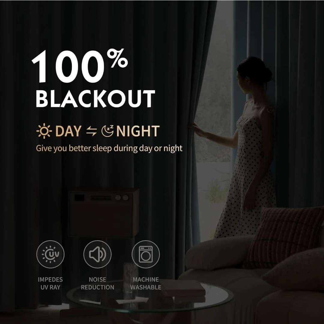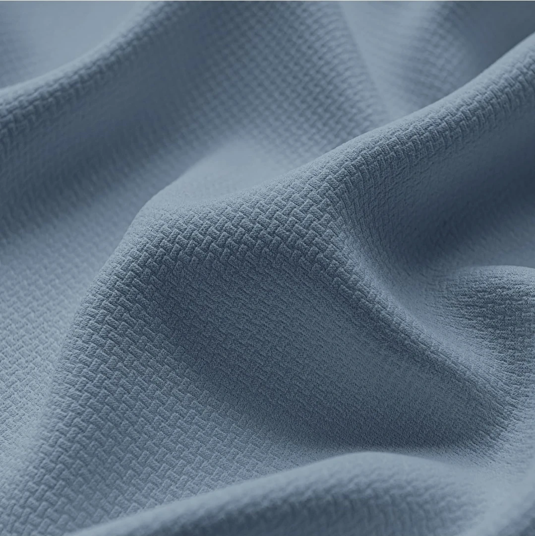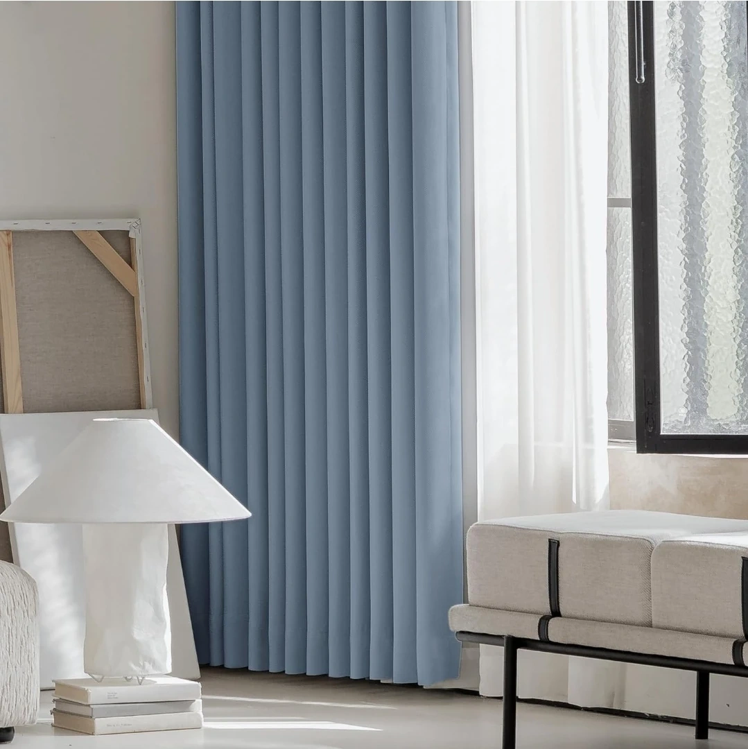 These FMFUNCTEX curtains offer 100% blackout with a linen texture. They're made from high-density polyester fabric for thermal insulation and noise reduction. The slate blue colour adds a nice touch to any room.