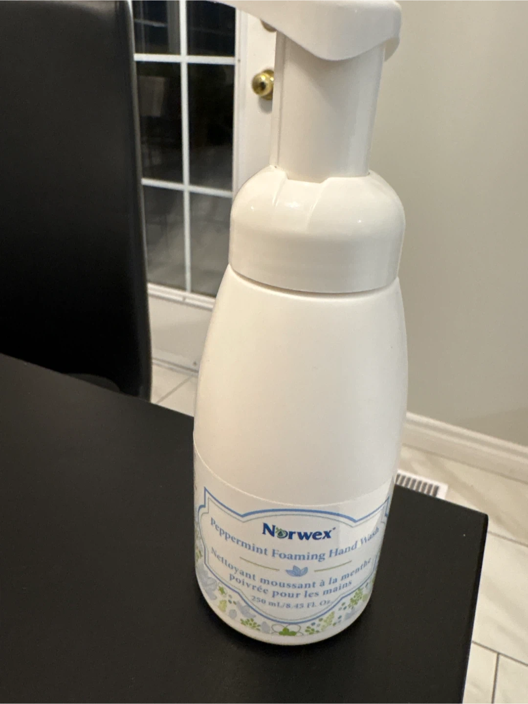 Norwex Peppermint Foaming Hand Wash. It comes in a 250 ml / 8.45 fl. Oz. bottle….natural cleaning foam and gentle on your skin…* Pick up on Chandos Drive in Chicopee area of South Kitchener N2A4H8
