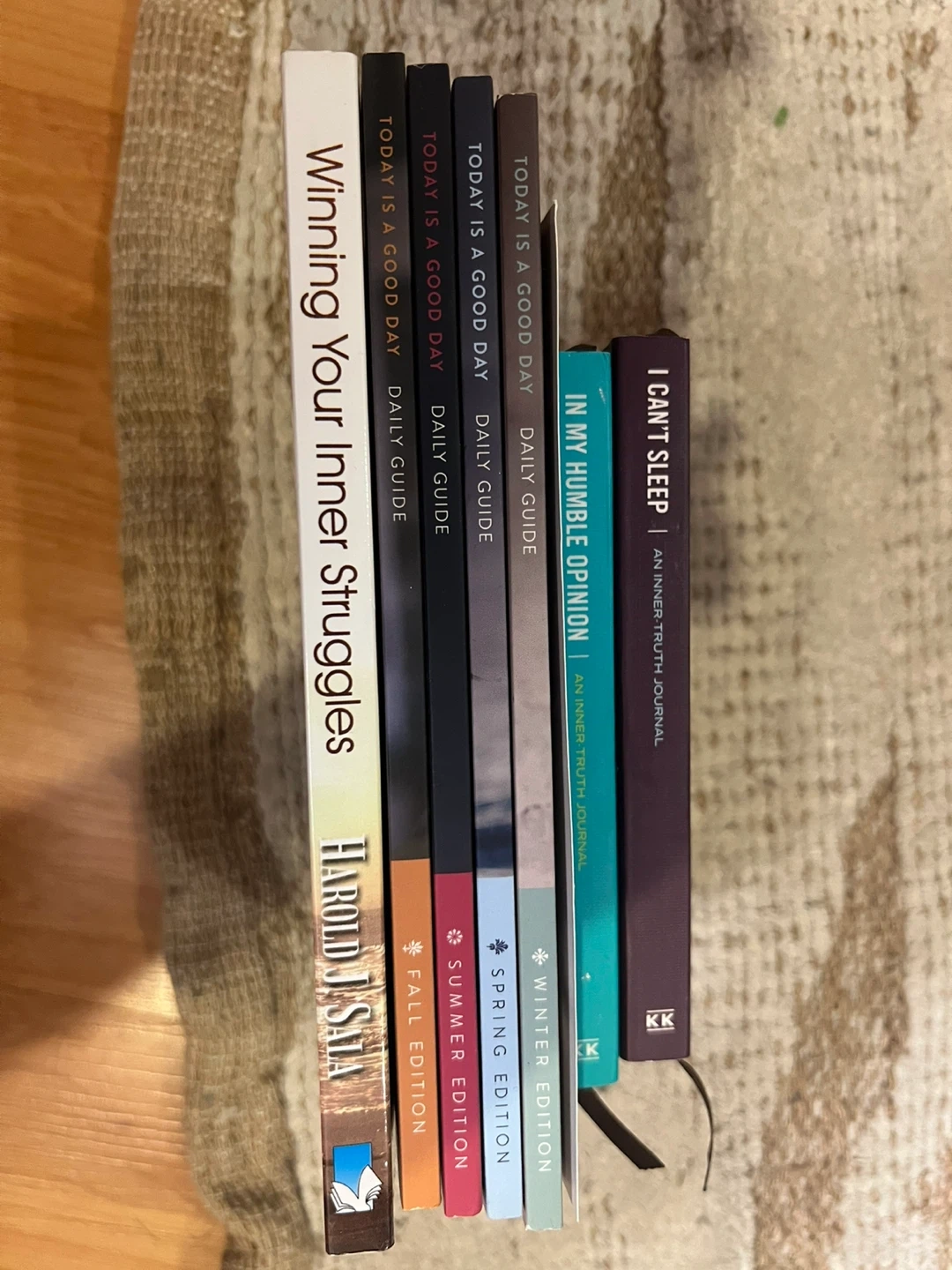 A collection of journals and guides including 'Winning Your Inner Struggles' by Harold J. Sala. It also includes several 'Today Is A Good Day Daily Guide' journals and 'Inner Truth Journals'. Seasonal editions like Fall, Summer, Spring, and Winter are present.