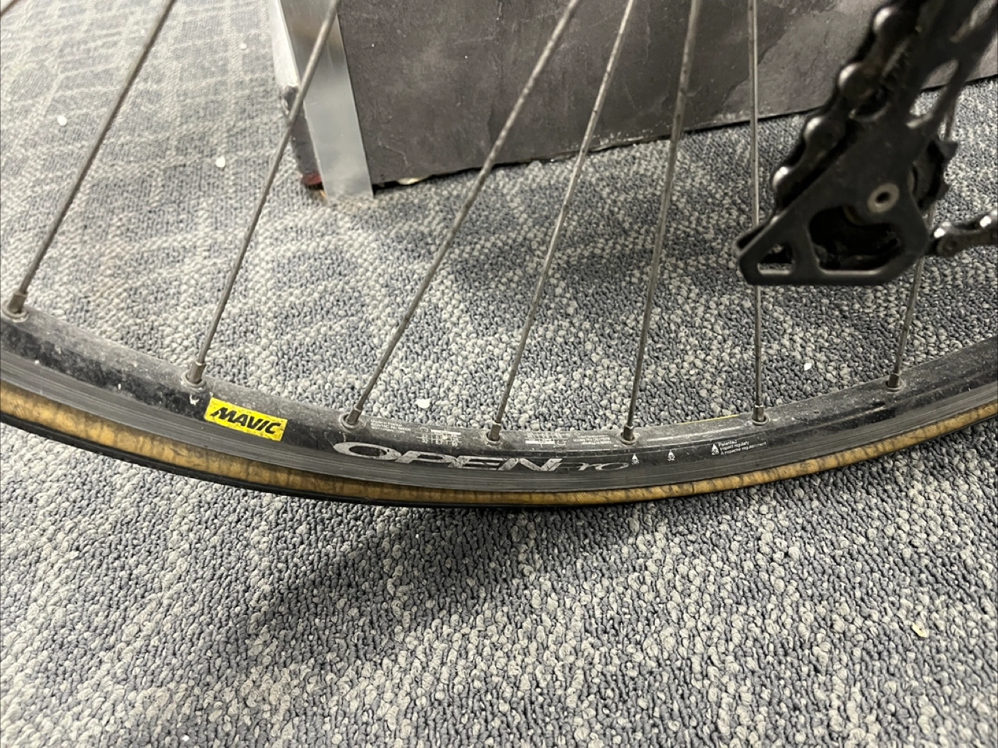 - Mavic Open Pro rims on Shimano 105 hubs