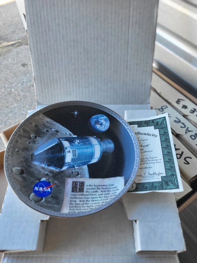 Hi there! I have eight commemorative NASA plates, all with certificates of authenticity and in their original boxes. Asking $15 per plate, or $100 for all eight. Cash or cashless payment accepted. Available for curbside pickup or local drop-off. Please message or call/text Ben at 5878378297. Thanks!