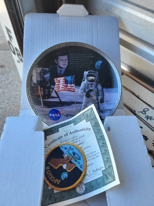 Hi there! I have eight commemorative NASA plates, all with certificates of authenticity and in their original boxes. Asking $15 per plate, or $100 for all eight. Cash or cashless payment accepted. Available for curbside pickup or local drop-off. Please message or call/text Ben at 5878378297. Thanks!