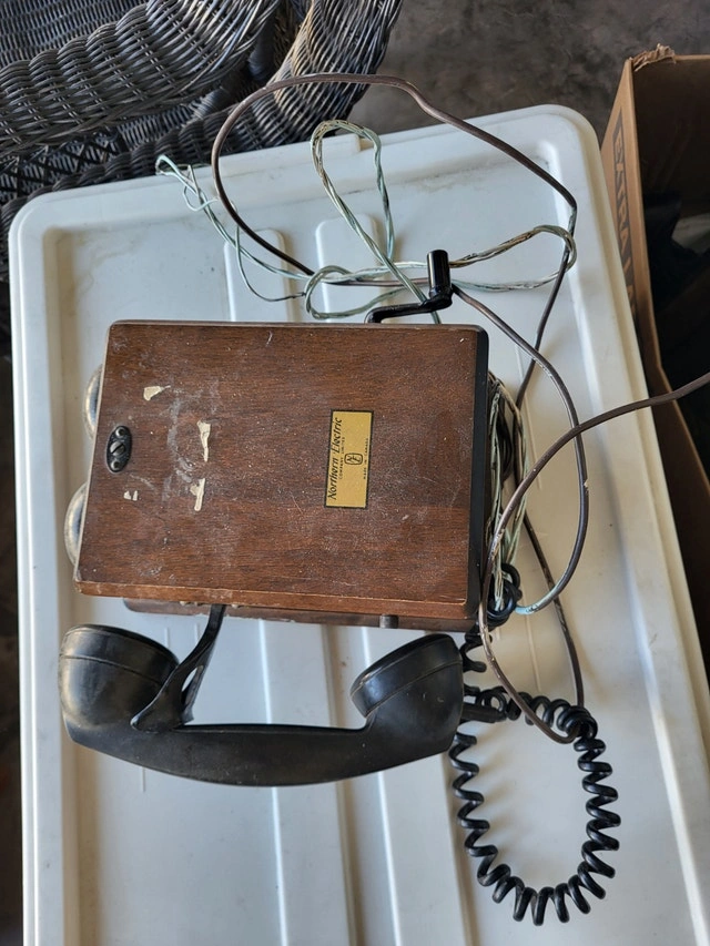 Hello! I'm selling this vintage telephone. It has a ringing bell and wiring. I'm not sure if it still works, but it seems to be in decent condition for its age. Asking $50. Cash and cashless payments are accepted. Curbside pickup is available.