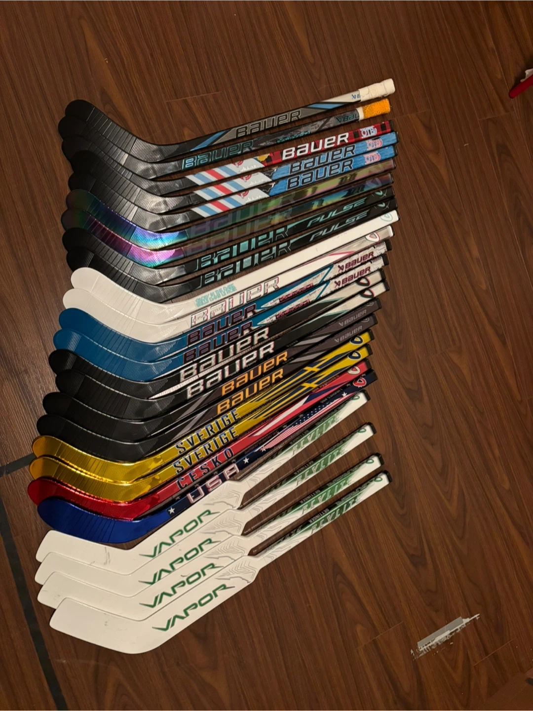 A variety of Bauer hockey sticks are available, featuring different models and designs. Some sticks include "Vapor" branding. This collection offers options for players looking for specific models or designs.