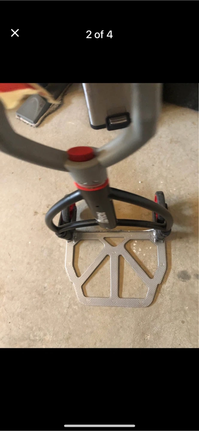 This folding dolly hand truck is made of metal with a sturdy platform. It's designed for carrying loads. The platform has a textured grip pattern. It's collapsible for easy storage.