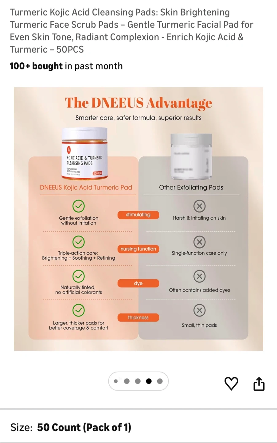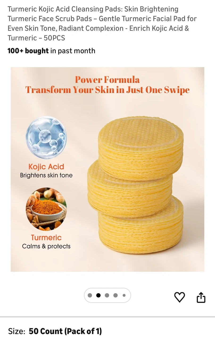 Kojic Acid & Turmeric Cleansing Pads - 50 Count