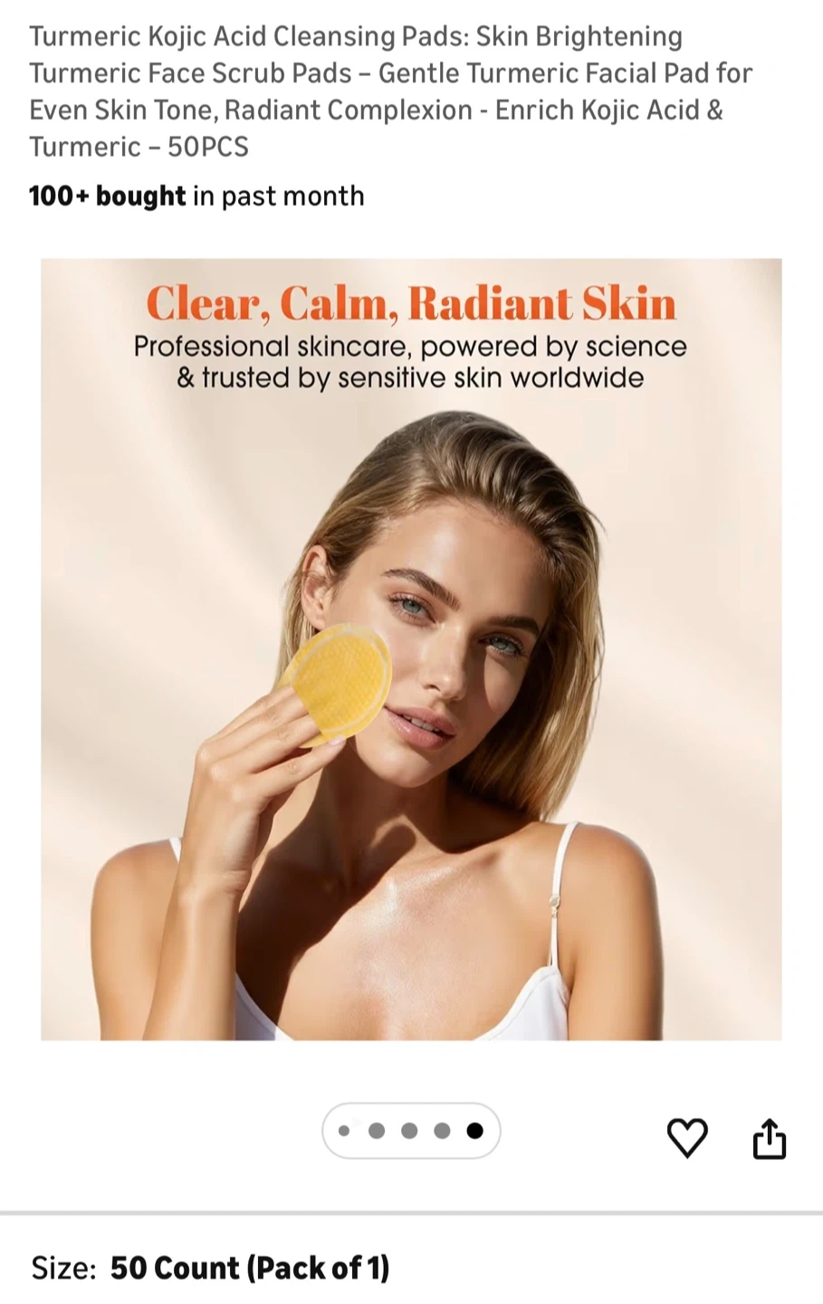 Turmeric Kojic Acid Cleansing Pads: Skin Brightening Turmeric Face Scrub Pads – Gentle Turmeric Facial Pad for Even Skin Tone, Radiant Complexion - Enrich Kojic Acid & Turmeric – 50PCS