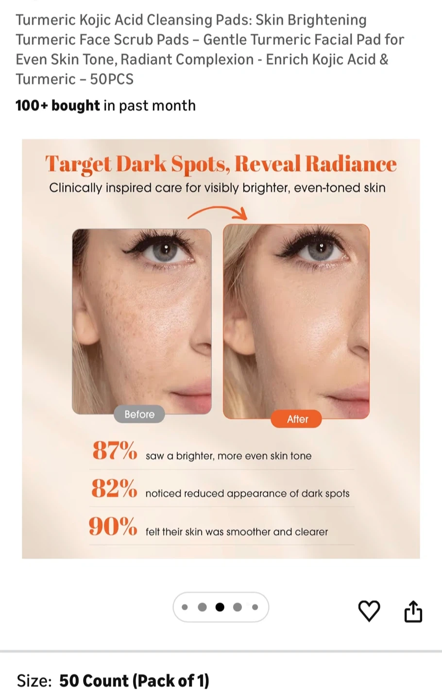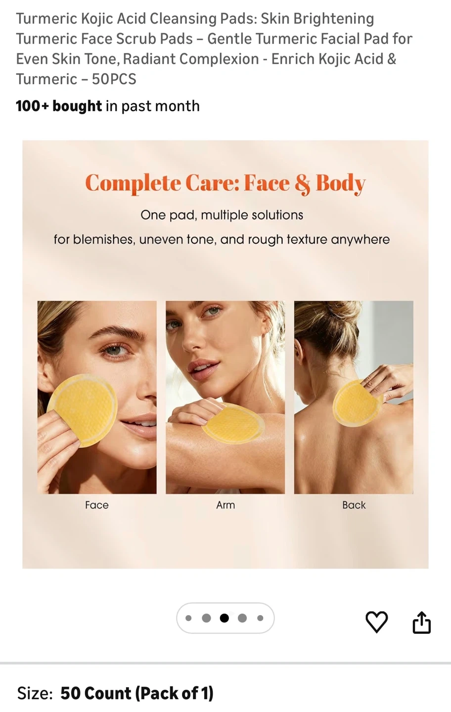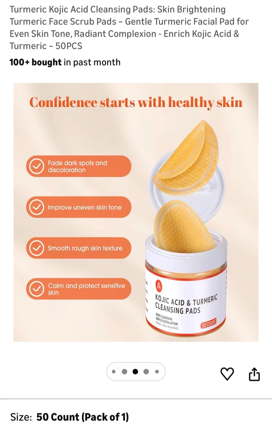 Kojic Acid & Turmeric Cleansing Pads - 50 Count