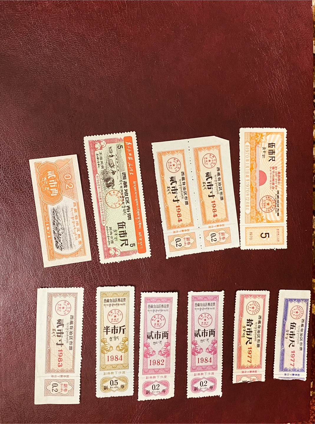 This is a collection of vintage Chinese currency notes. The denominations visible include 0.1, 0.2, 0.3, 0.5, 1, 2, and 5 Jiao. Years such as 1973, 1977, and 1982 are printed on some notes. These notes would be of interest to collectors of historical currency or Asian memorabilia.