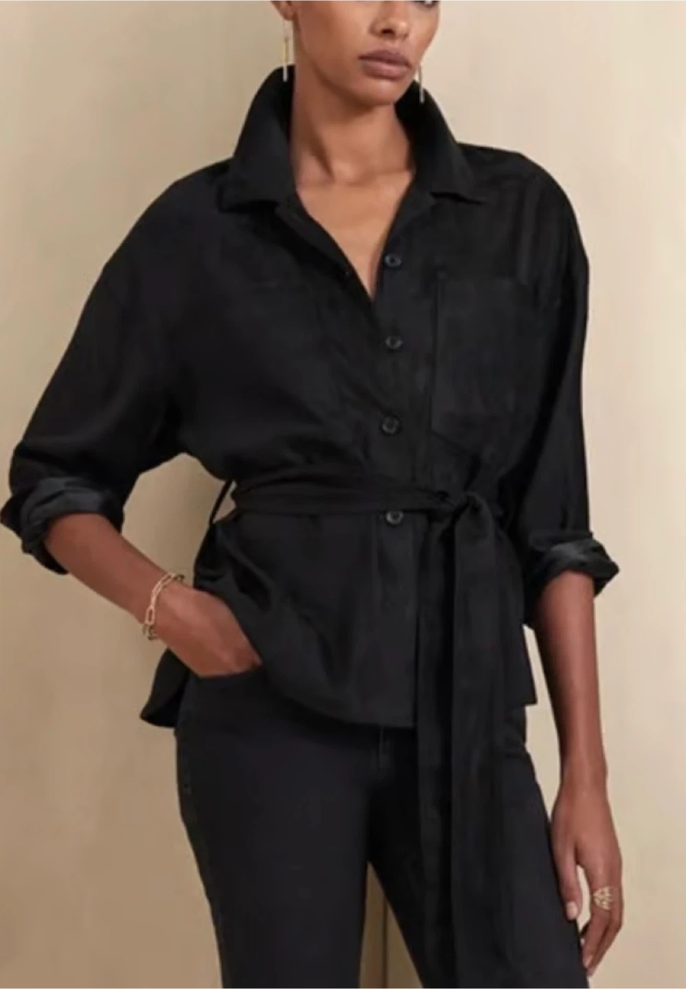 Banana Republic Black Vegan Suede Belted Shirt - Size S