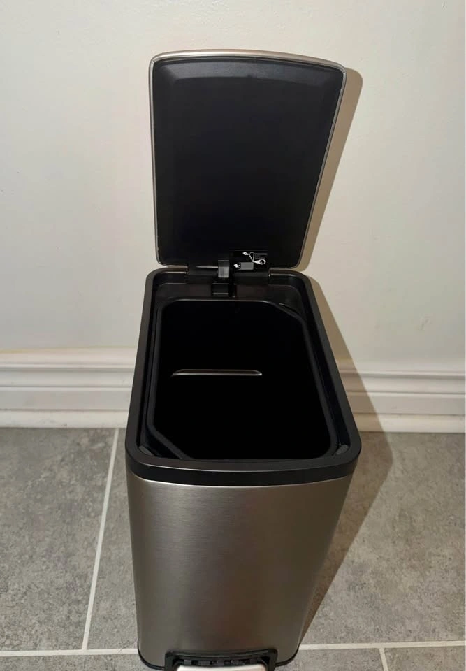 Selling a premium Kohler 6L stainless steel step trash can in excellent, like-new condition. Barely used and looks brand new, very clean with no dents or scratches. This is a high-quality, durable bin that looks great in any bathroom, office, or bedroom. Features include fingerprint-resistant stainless steel, a quiet-close lid that doesn't slam, a hygienic hands-free step pedal, and a removable inner bucket for easy emptying and cleaning. Located in Brampton (North Park Dr & Torbram Rd).