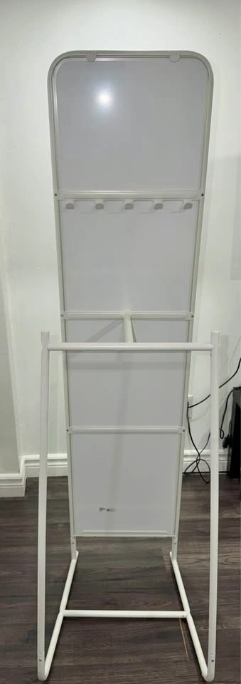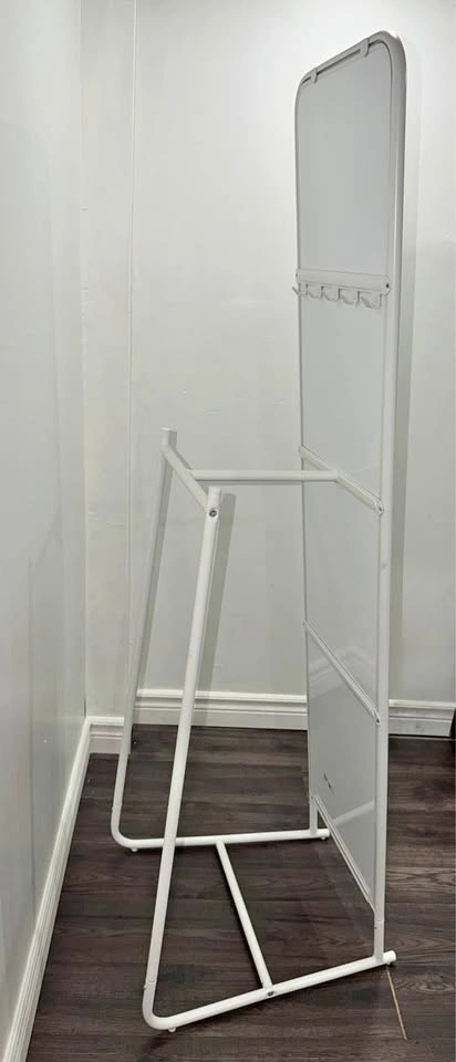 Full-length standing mirror with storage hooks on the back. Flawless condition, no scratches on glass or frame. Original assembly manual included. I will disassemble it for easy transport. Located in Brampton (North Park Dr & Torbram Rd).
