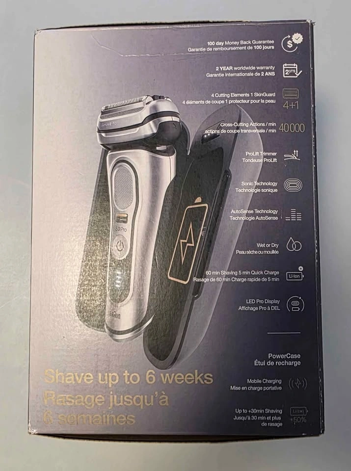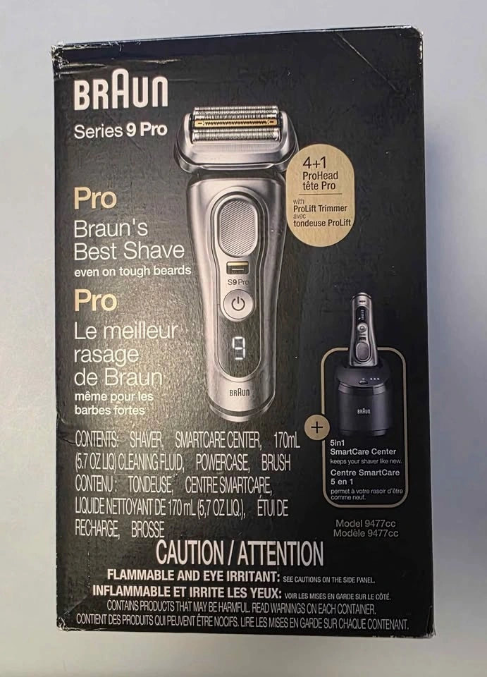 Braun Series 9 Pro Electric Shaver (Model 9477cc), Silver Color, New (Open Box), Complete.