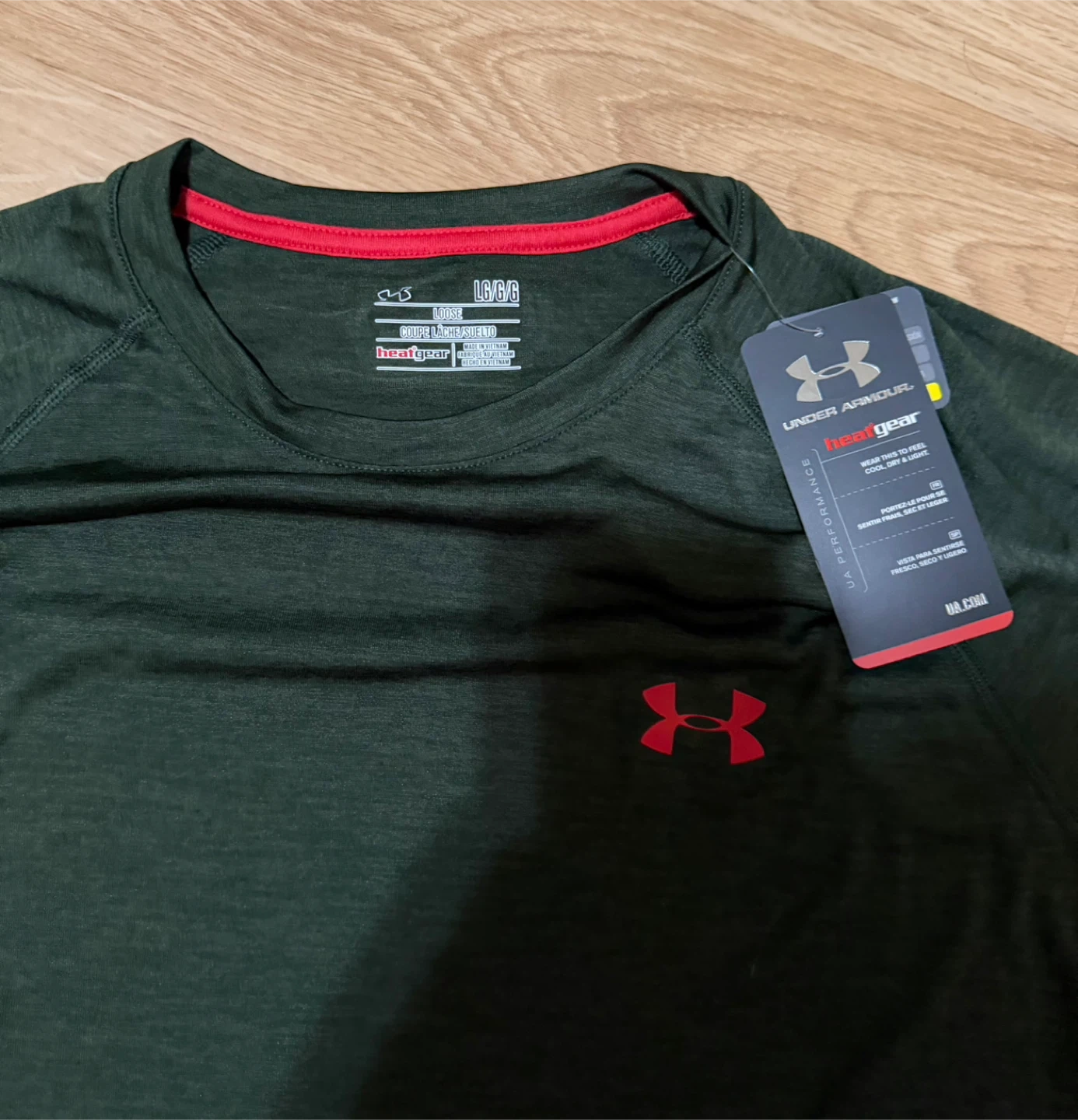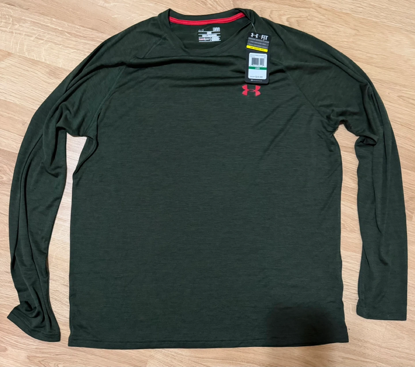 This is an Under Armour HeatGear long sleeve shirt. It's a size Large and made for a loose fit. The material is designed for performance and comfort.