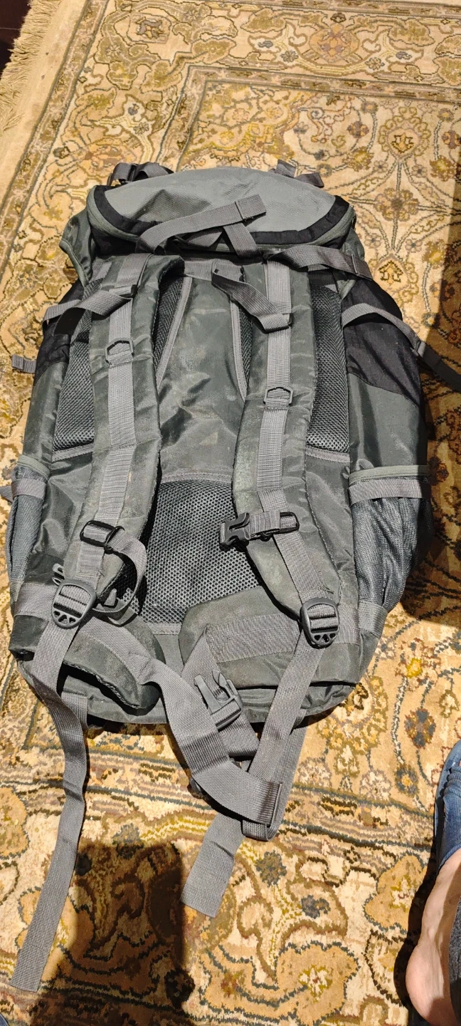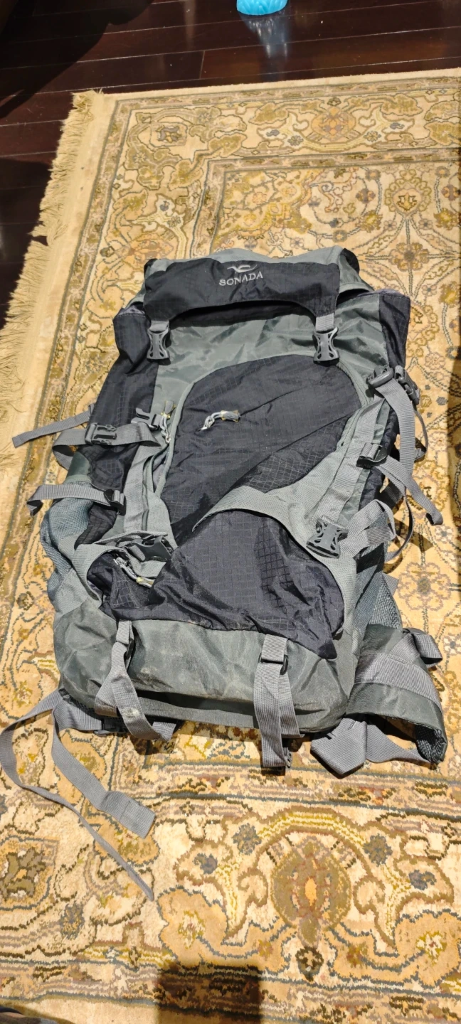 This SONADA backpack is designed for outdoor adventures. It's made of durable grey fabric with multiple compartments and adjustable straps. This pack is great for carrying gear on long hikes or trips!