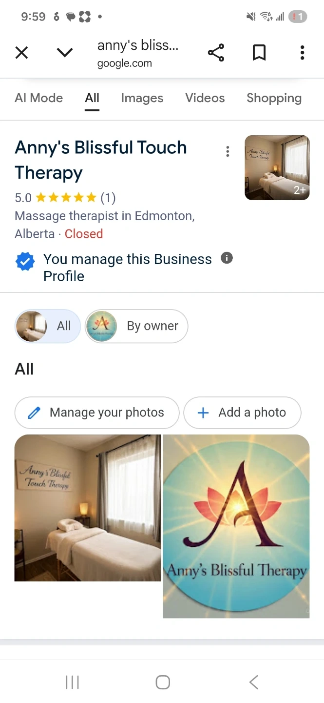 This is a massage bed from Anny's Blissful Touch Therapy. It comes with a headrest cushion and a soft, plush blanket. The bed is set up in a treatment room.