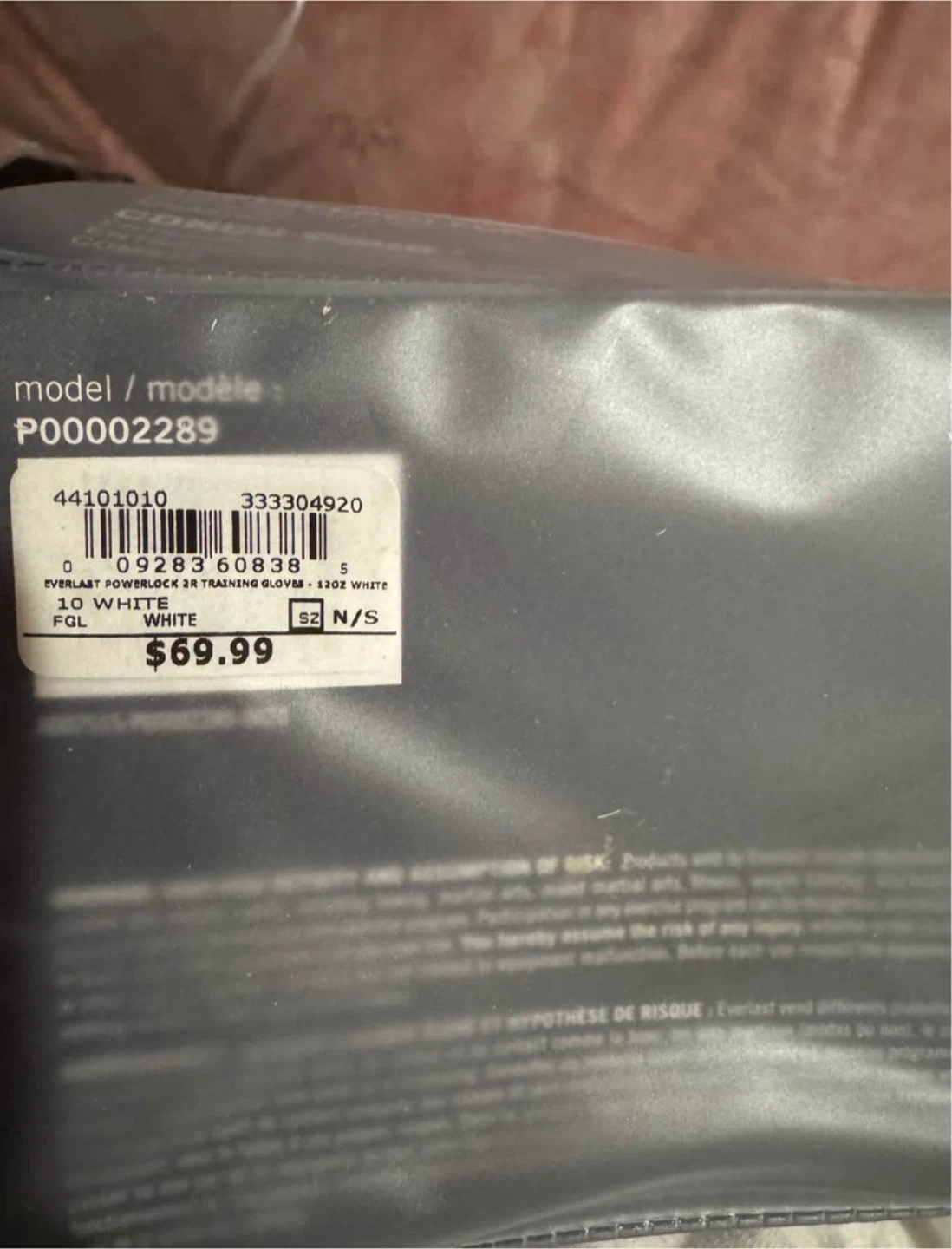 Everlast Powerlock training gloves in white. These 10oz gloves are designed for impact absorption and dispersion. Hook and loop closure secures hands with a highly customizable fit.