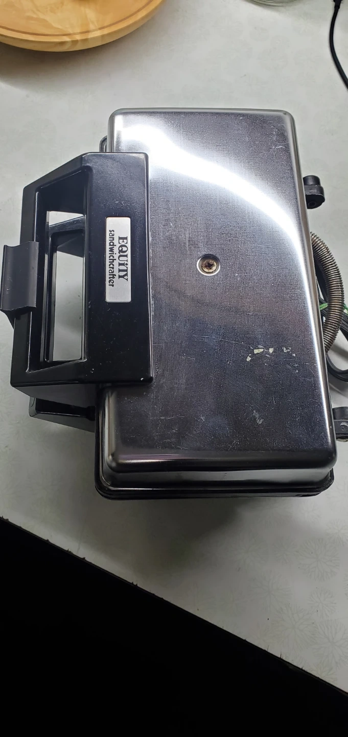 This is an EQUITY brand sandwich toaster. It's a simple appliance for making toasted sandwiches. It has non-stick plates for easy cleanup.