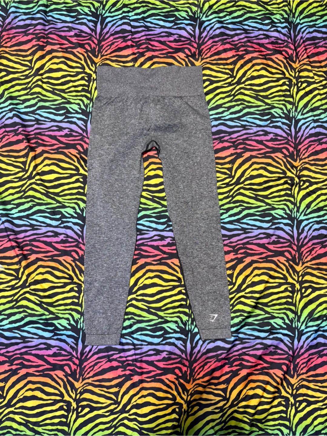 These are grey seamless leggings from Gymshark. They're made with a comfortable, stretchy material. This would be good for workouts or casual wear! size medium