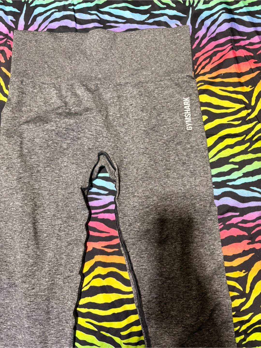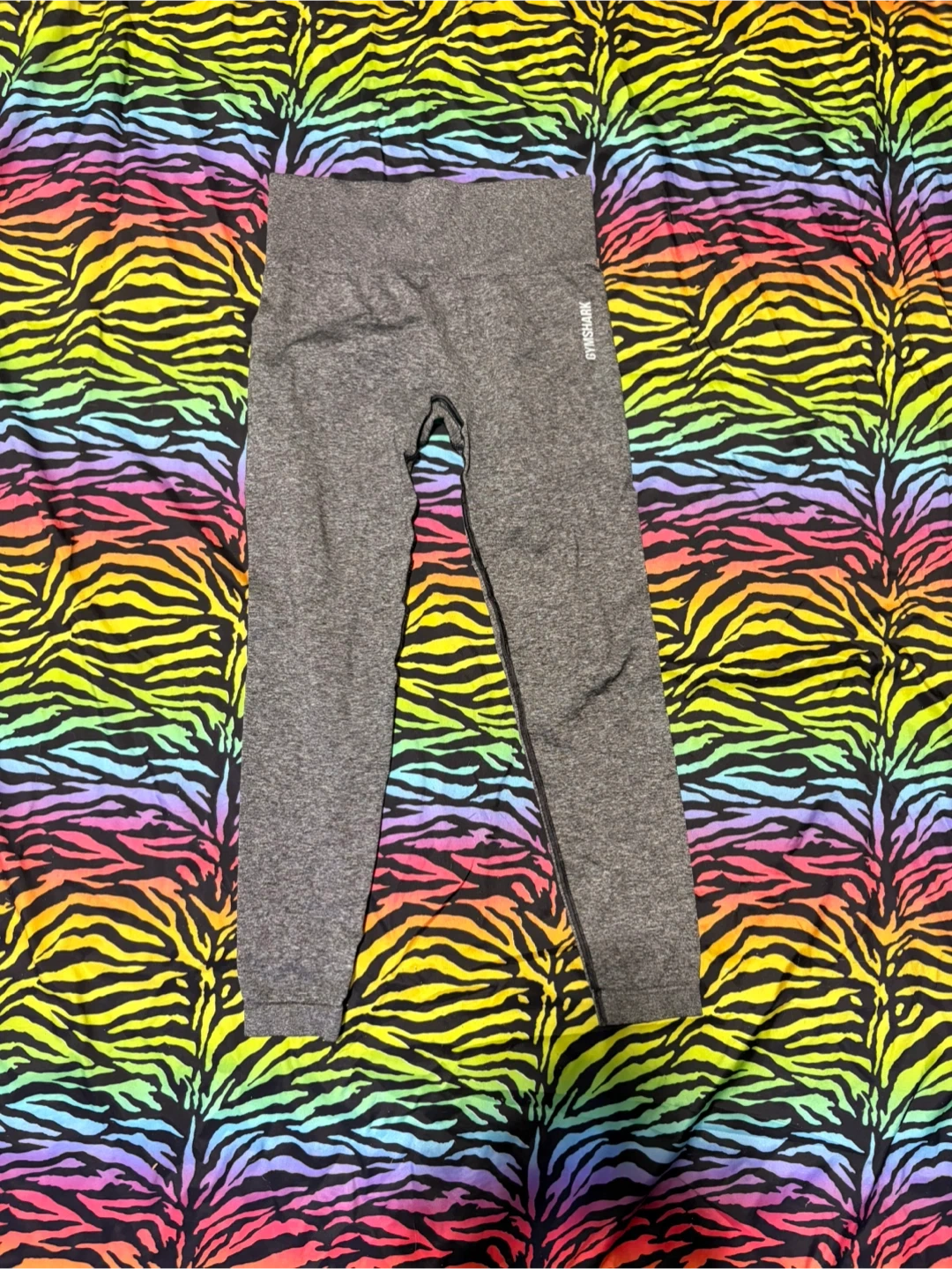 These are grey seamless leggings from Gymshark. They're made with a comfortable, stretchy material. This would be good for workouts or casual wear! size medium