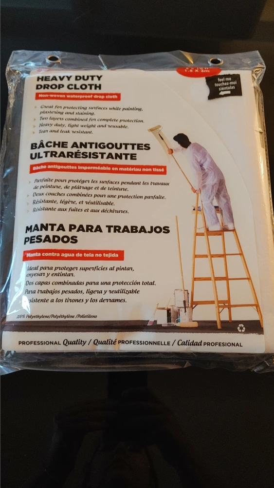 This is a ProPainter heavy duty drop cloth. It's non-woven and waterproof. It's 5 by 10 feet in size. It's tear and leak resistant!