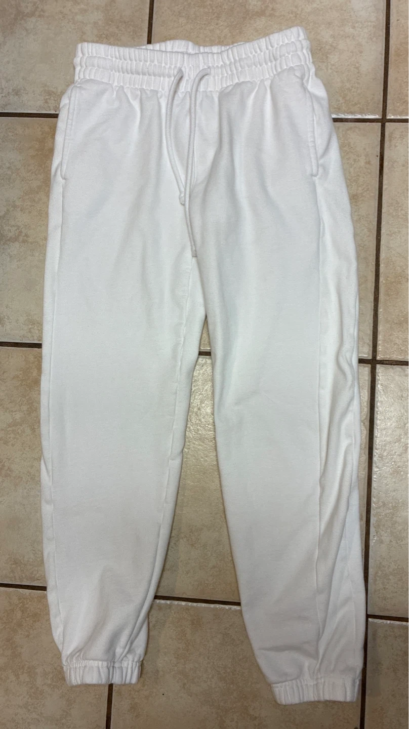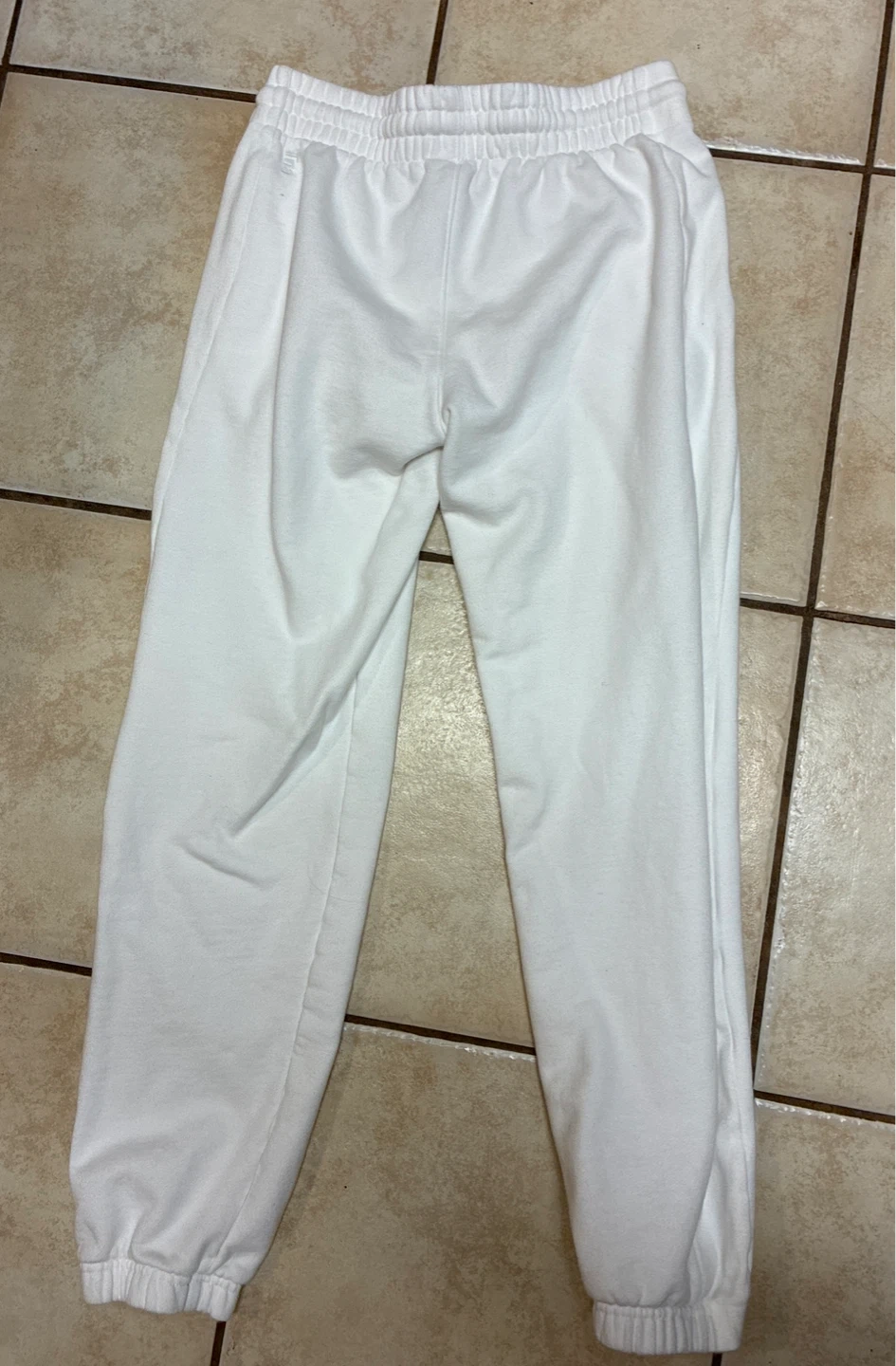 These white Tna sweatpants are made from extra fleece. They feature an elastic waistband with a drawstring and cuffed ankles. Size is 2XS.