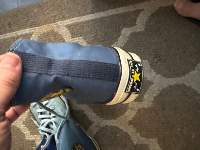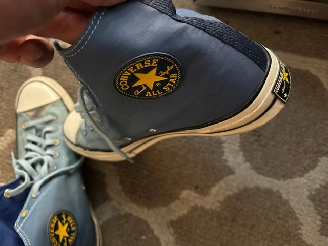 Step out in style with these used Converse Chuck 70 high-top sneakers, featuring a unique blue colourway. These stylish sneakers are in great condition and ready for a new home. Key features: - Brand: Converse - Model: Chuck 70 - Style: High-top - Colour: Blue - Condition: Gently Used - Size: US 10.5. These were limited edition and are hard to find. Payment: Cashless payment, Cash accepted.