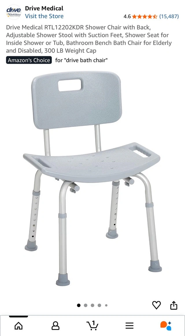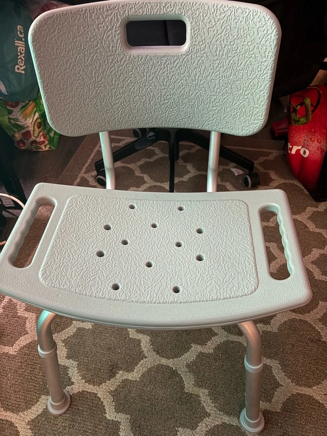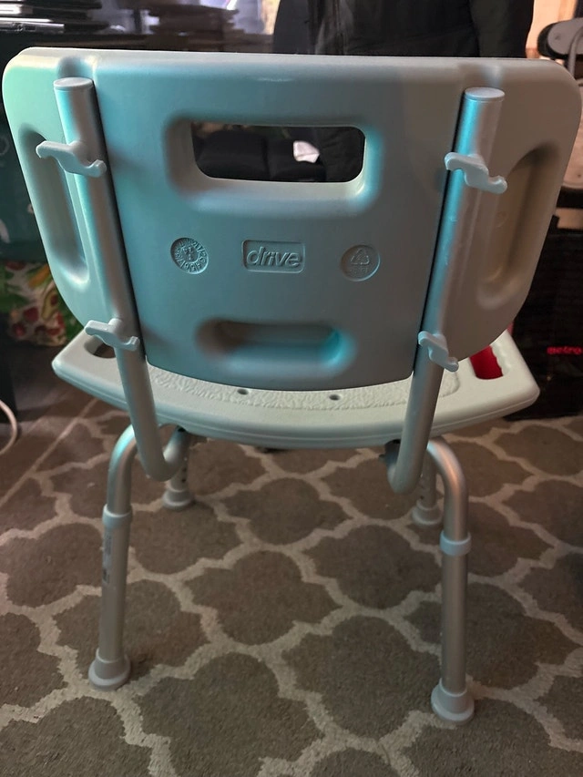 This Drive shower chair offers a safe and comfortable bathing experience, featuring a sturdy frame and supportive backrest. It's been lightly used for a couple of months, well cared for, and has been fully cleaned and sanitized. Features include a durable, blow-molded plastic bench and backrest, a lightweight, durable, and corrosion-proof aluminum frame, tool-free assembly for the back and legs, and height-adjustable legs with non-skid tips. Weight capacity is 300 lbs. Retails for $57+tax on Amazon. Cash accepted.