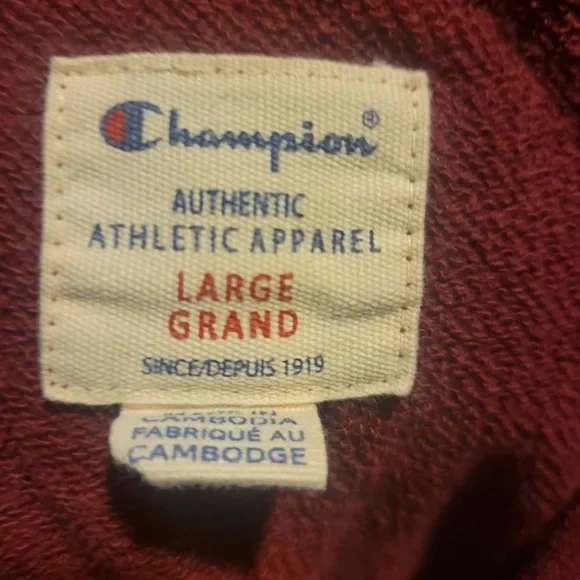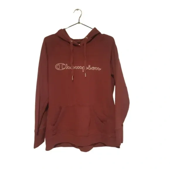 Selling a Champion hoodie in size large! It's a nice burgundy colour and in great condition. Perfect for staying cozy on cooler days!