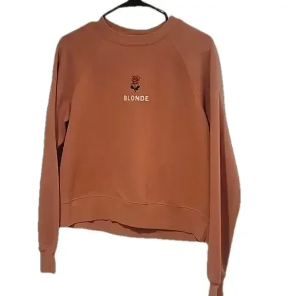 Cozy up in this cute Brunette the Label sweatshirt! It's a size XS and features a lovely rose design with the word 'BLONDE' embroidered on the front. Perfect for adding a touch of style to your casual wear