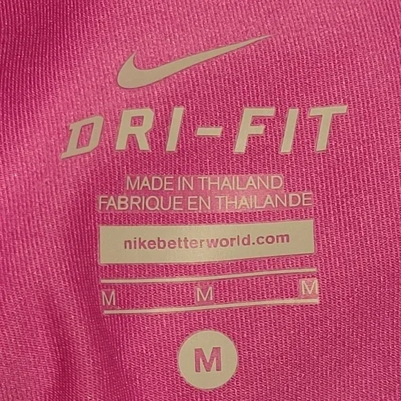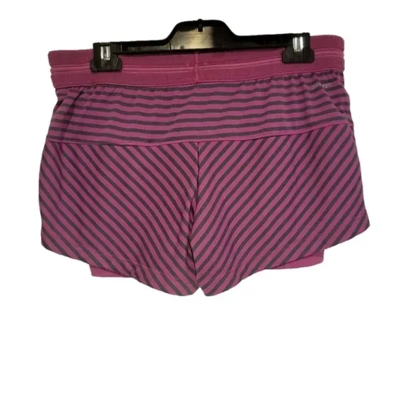 These Nike Dri-FIT running shorts are perfect for your workouts! They're a size medium and feature a stylish striped pattern in shades of pink and grey. Made with 100% polyester for the body and a blend of polyester and spandex for the brief, they're designed to keep you comfortable and dry while you exercise