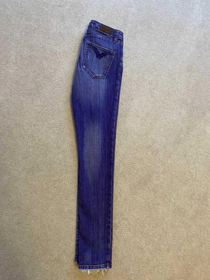 These are a statement pair of jeans in a gorgeous and unique purple color. I bought them in a boutique in Greenwich Village, New York. They cost $150 USD (over $220 CAD with tax). They are stretchy and not thick denim, so they fit and flatter nicely. They don't fit me anymore and have only been worn a few times, so they are in excellent condition.