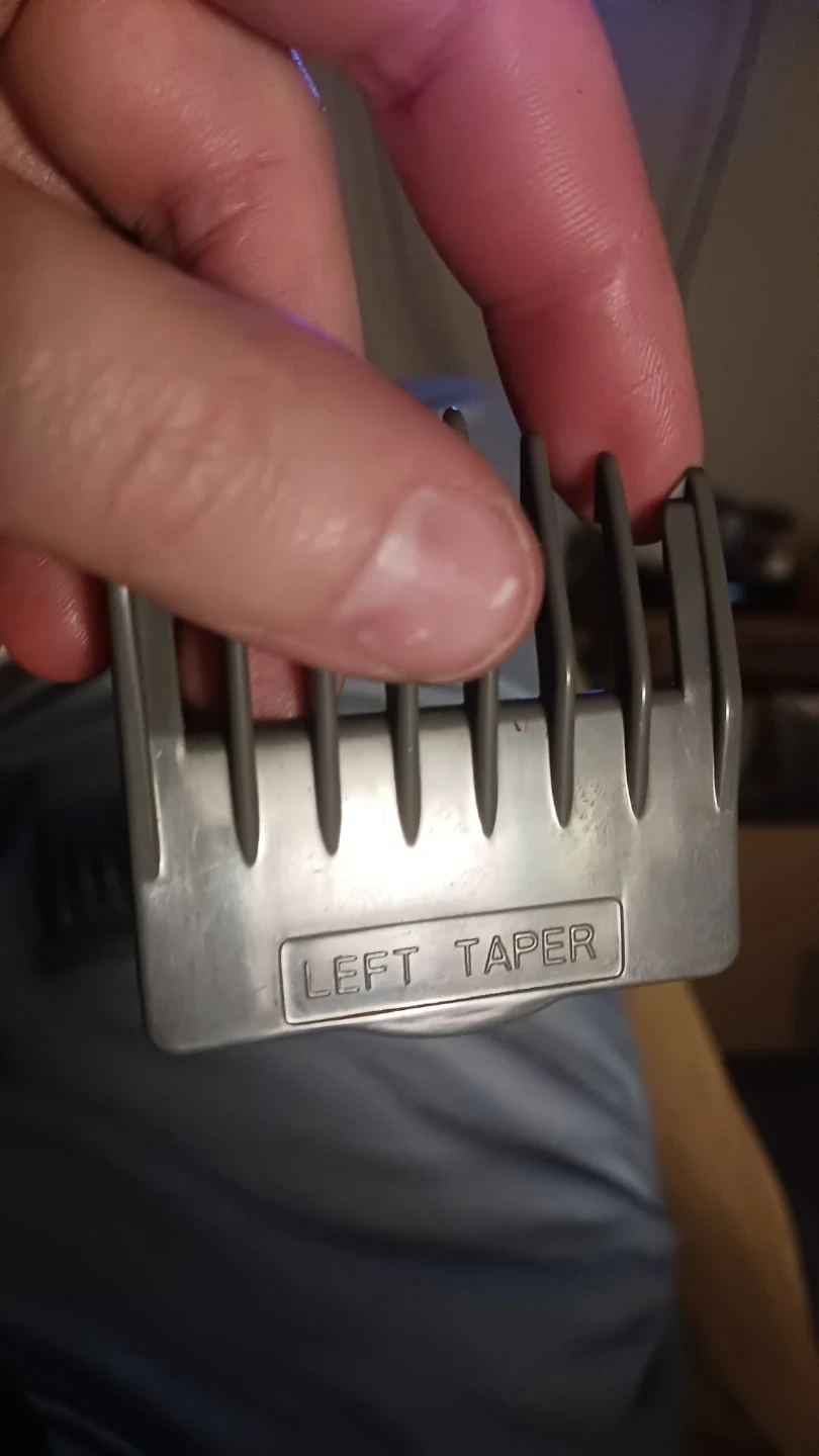 Set includes various hair clipper attachment guards, including a right & left taper guard. One guard is labelled 18mm (3/4"). Also includes a small cleaning brush. These are likely replacement parts for a hair clipper set.