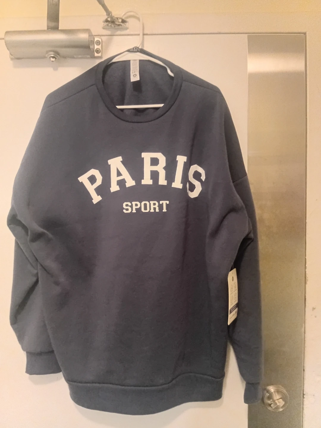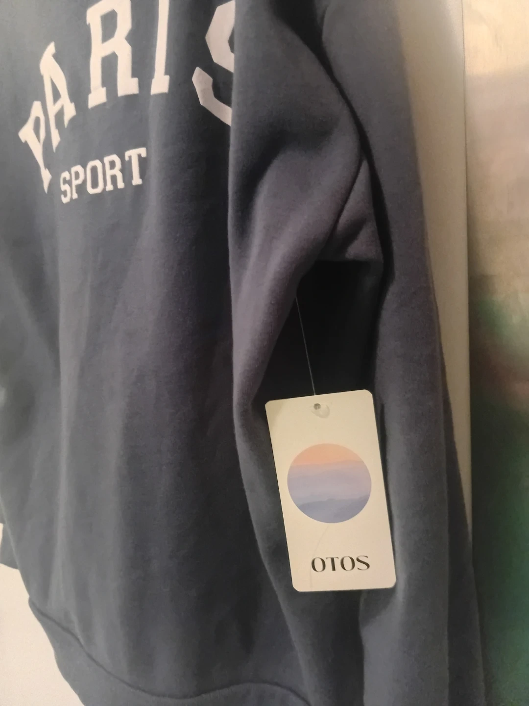 This is an OTOS New York Paris Sport sweatshirt in navy blue. It's a size 3X and made with 92% polyester and 8% spandex. Perfect for casual wear!