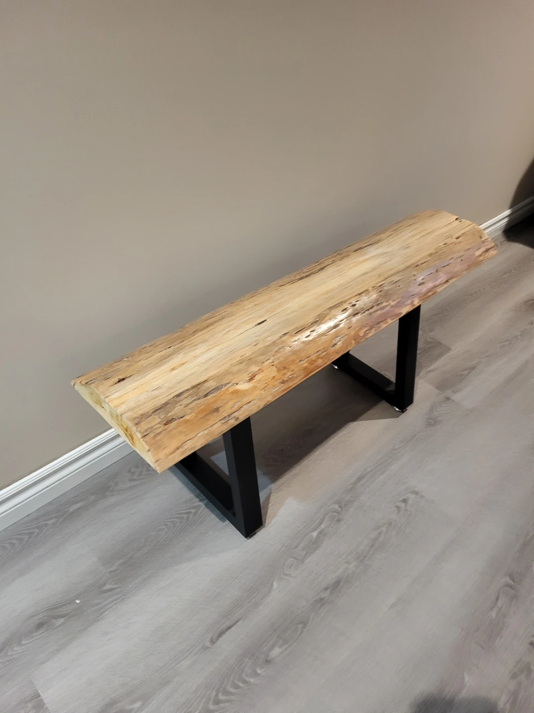 Organic Modern Style Live Edge Wood Bench with Black Legs