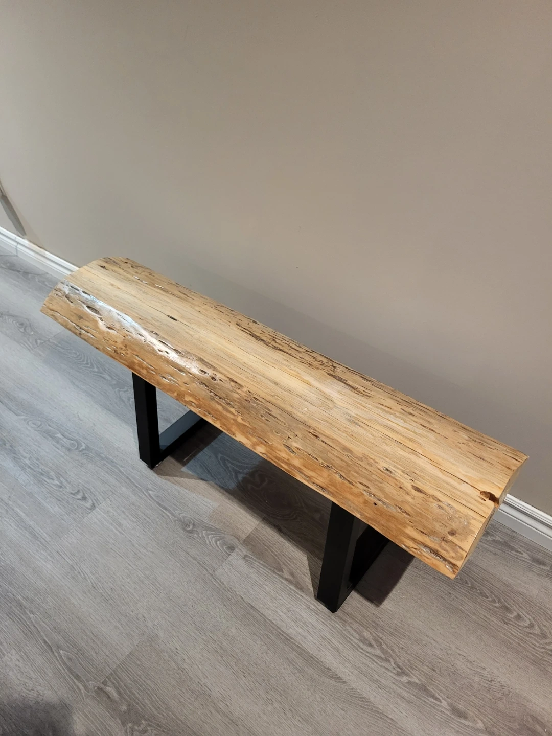 Organic Modern Style Live Edge Wood Bench with Black Legs