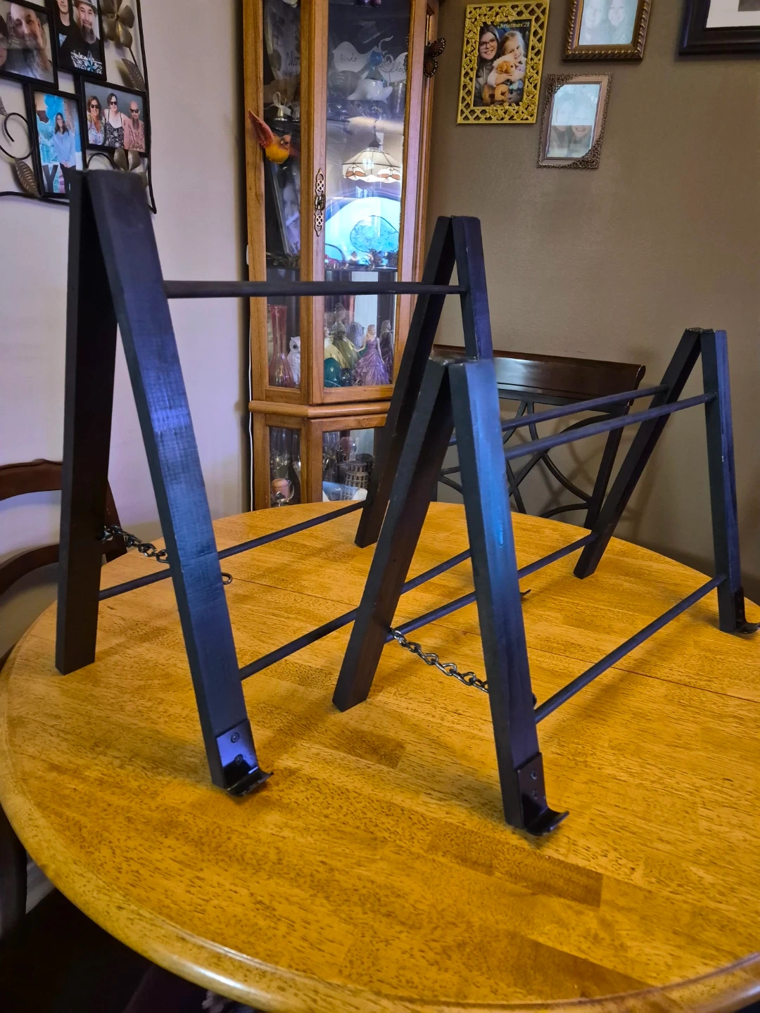 Pair of Hand Made Board Picture Poster etc. Table or Floor Stands each holds 22" or wider 22" x 15 1/2" and larger one is 22" x 20 1/2" - Great Sturdy Condition Excellent Condition please see all pictures