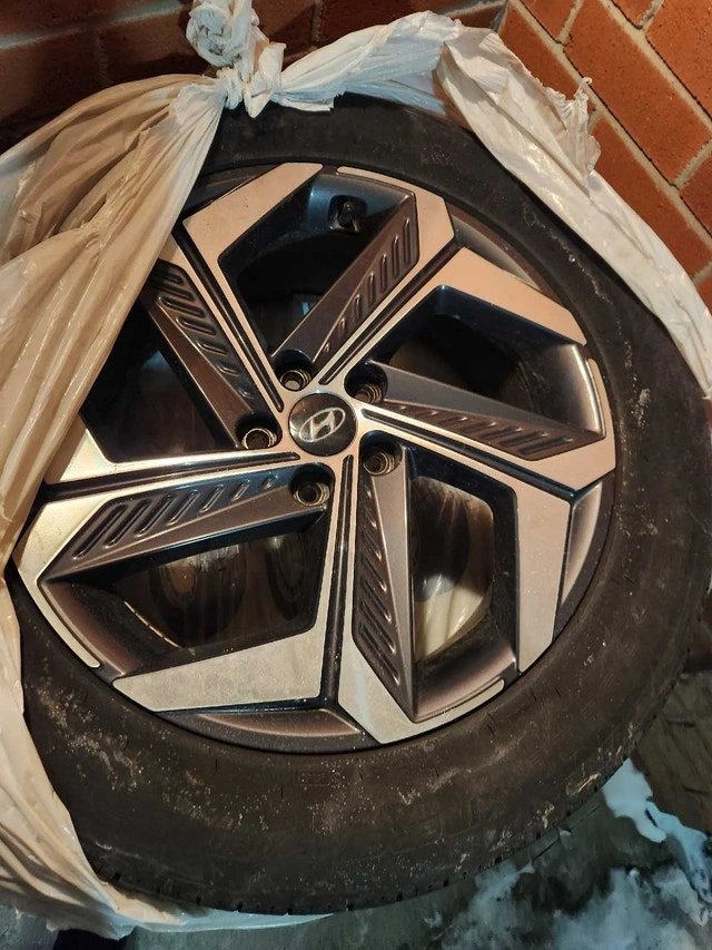 Selling a full set of 4 OEM factory wheels with all-season tires from my Hyundai Tucson. Stored indoors and in good used condition.